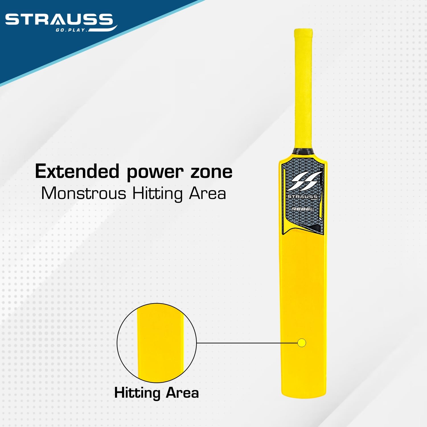 Strauss Rebel Cricket Bat | Full Size | Dimensions: 34 X 4.5 inch | Heavy Duty Hard Plastic Cricket Bat | Tennis & Synthetic Ball Cricket Bat | Tennis Cricket Bat,(Golden Yellow)