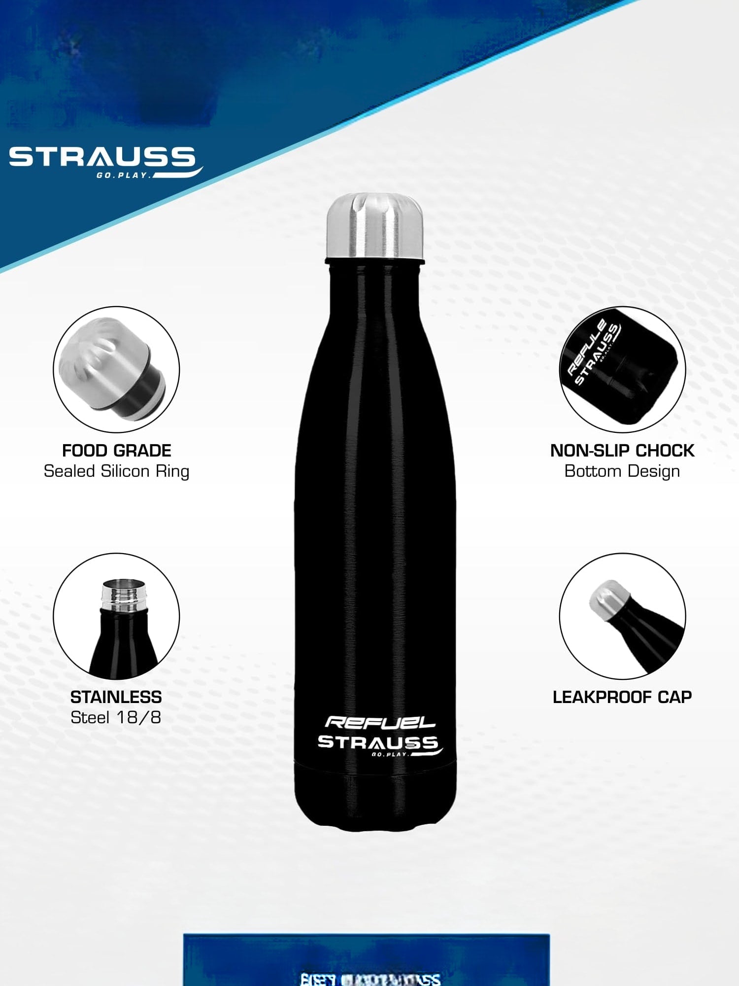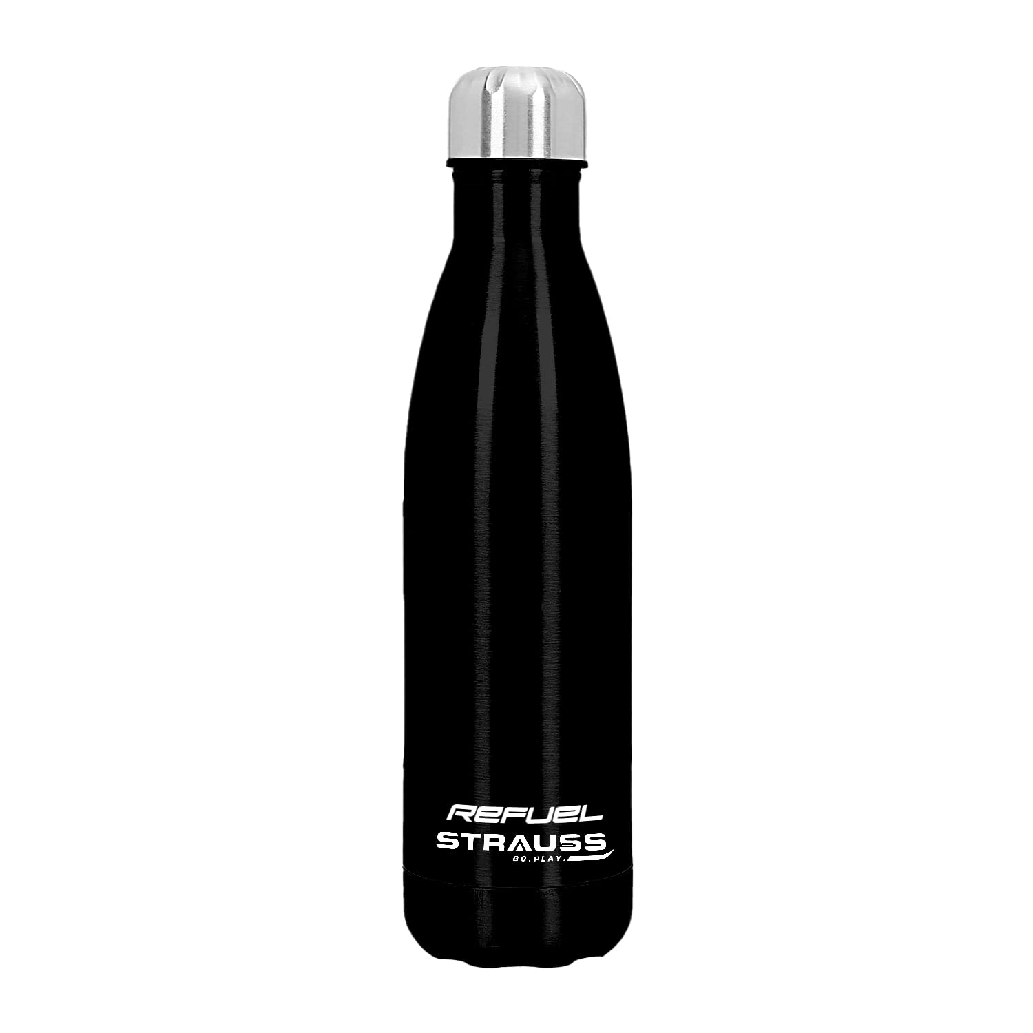 Strauss Refuel Steel Water Bottle | Leak Proof & Rust Free | Ideal for Office, Gym, Sports, Kitchen, Hiking, Trekking & Travel | Vacuum Insulated,(Black)