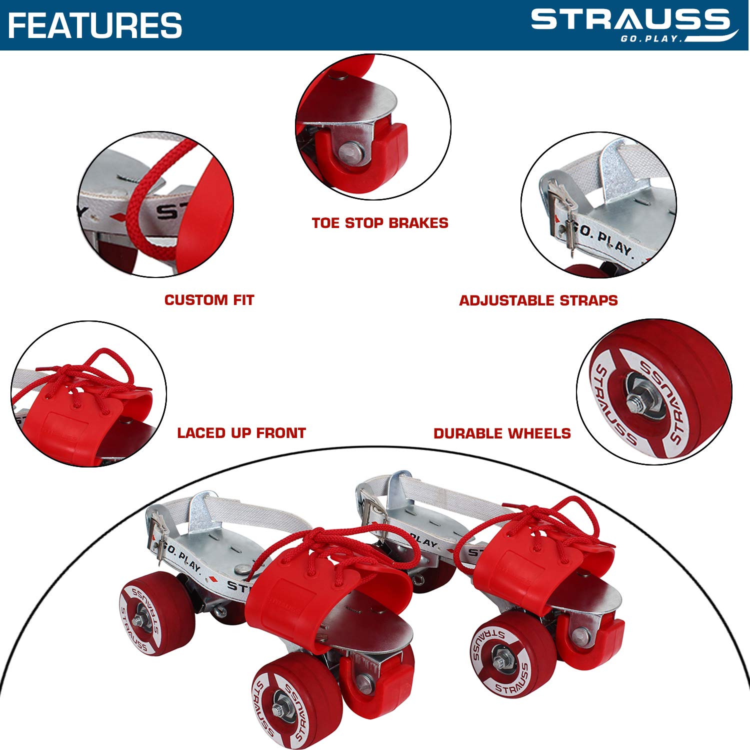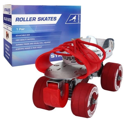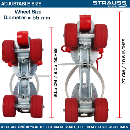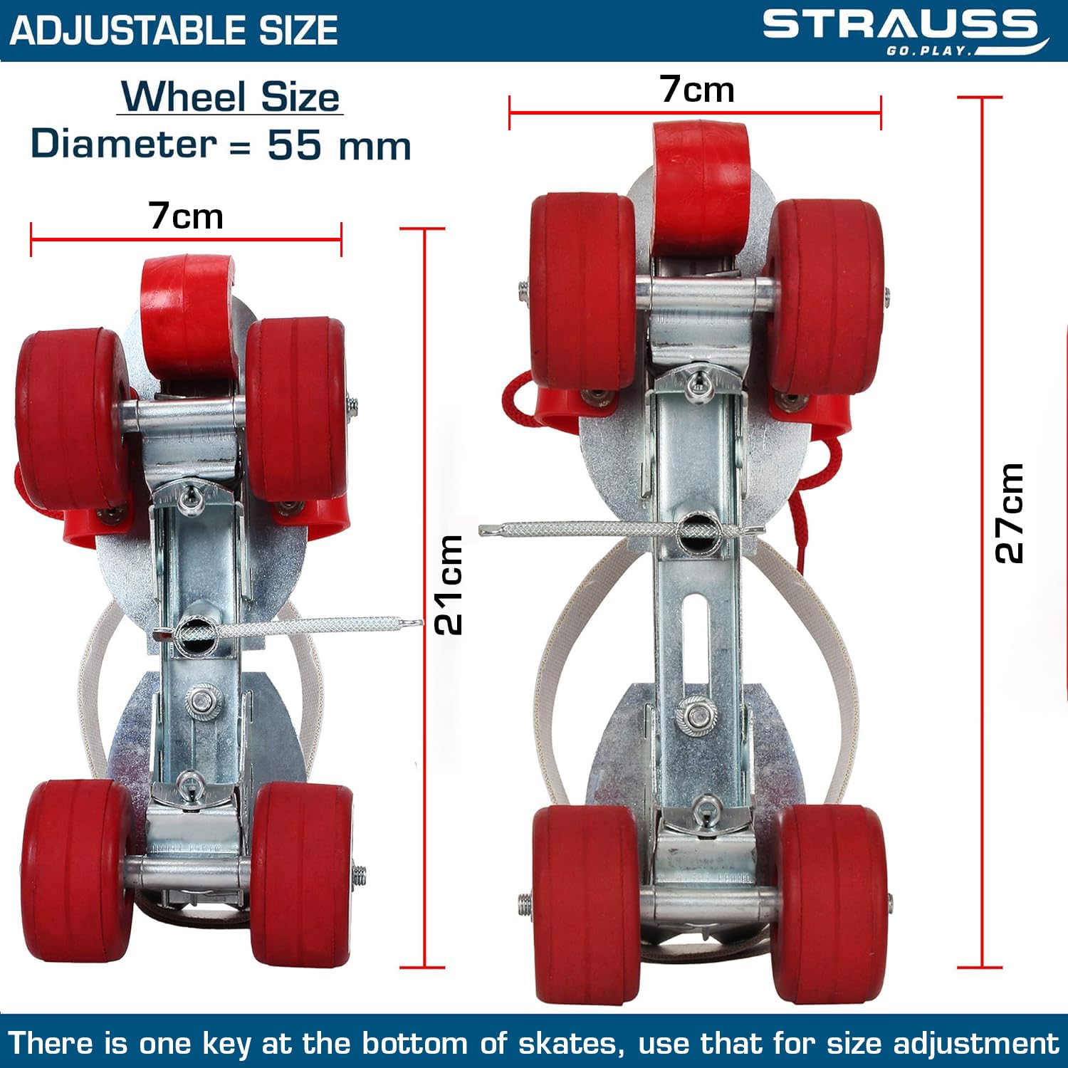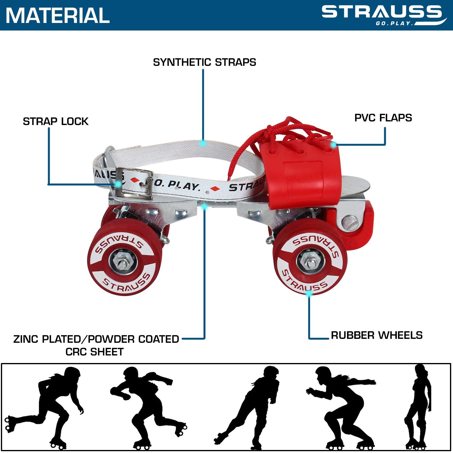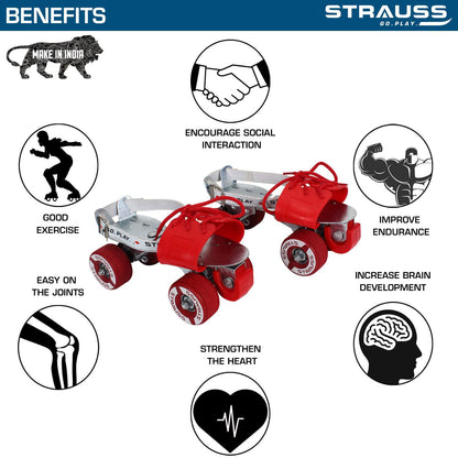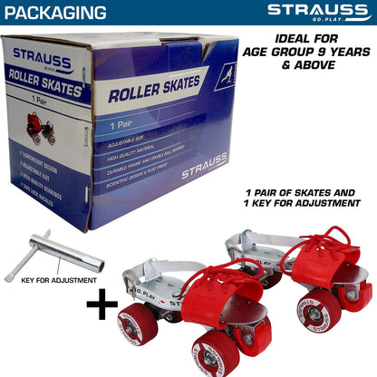 STRAUSS Senior Tenacity Roller Skates | Roller Blades for Kids | Adjustable Shoe Size | Ideal for Indoor and Outdoor Skating | Suitable for Age Group Above 9 Years, (Silver/Red)
