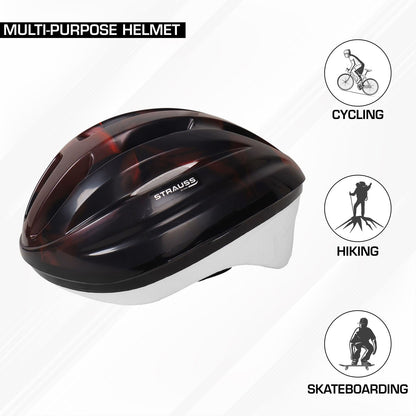 Strauss Cycling Helmet , ELITE | Light Weight with Superior Ventilation | Mountain, Road Bike & Skating Helmet With Premium White EPS Foam Lining| Ideal for Adults and Kids| Size: Junior, (Black and Red)
