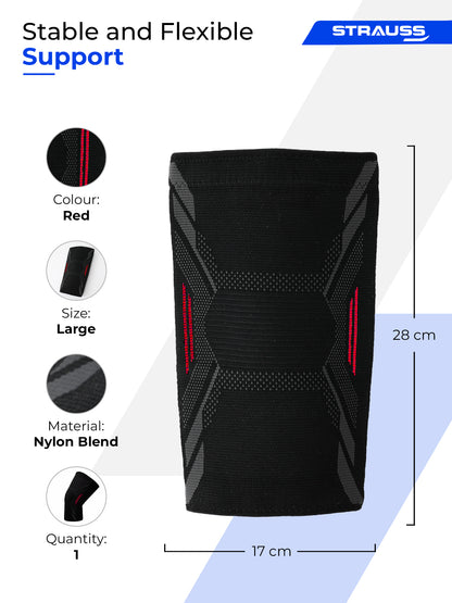Strauss Adjustable Knee Support Patella|Knee Cap for Knee Pain, Gym Workout, Running, Arthritis, and Protection for Men and Women| Knee Brace |Knee Guard |Knee belt | Joint pain relief | Pair, (Free Size, Black/Red)