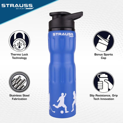 STRAUSS Stainless Steel Water Bottle, 750 ML | 100% Leak Proof | Eco-Friendly and BPA-Free | Water Bottle For Gym, Home, Hiking, Trekking and Travelling | Ideal For Girls, Boys and Kids, (Blue)