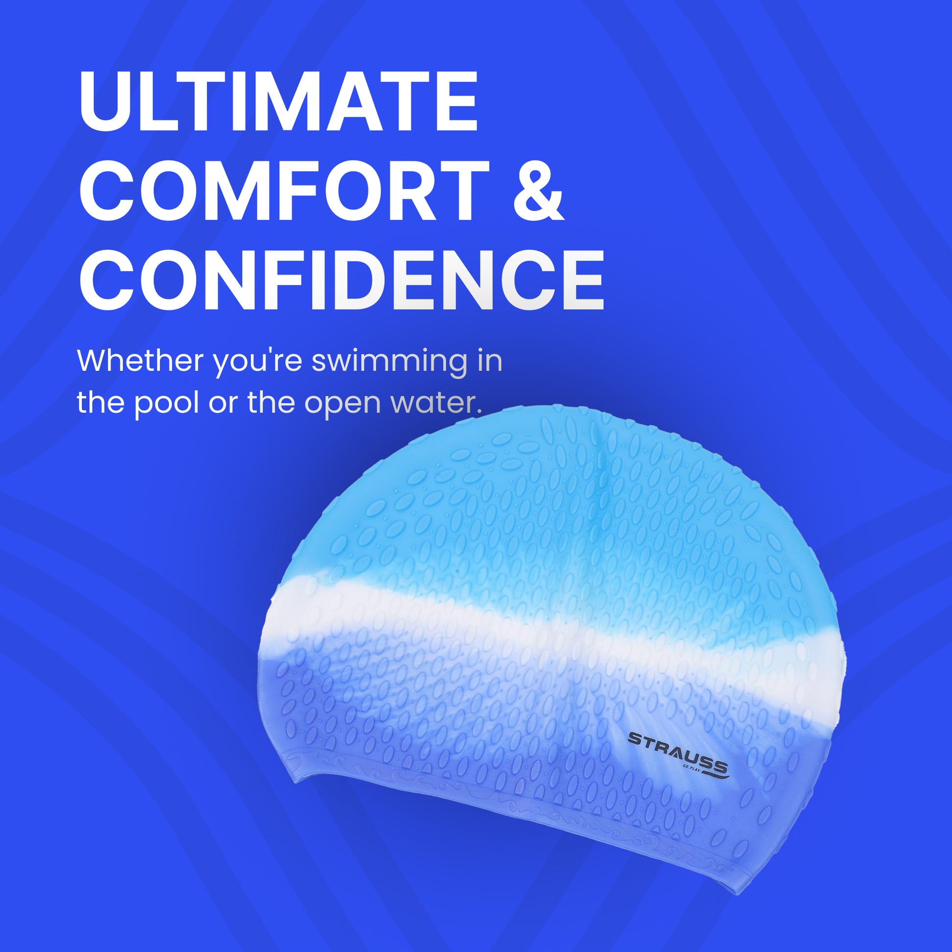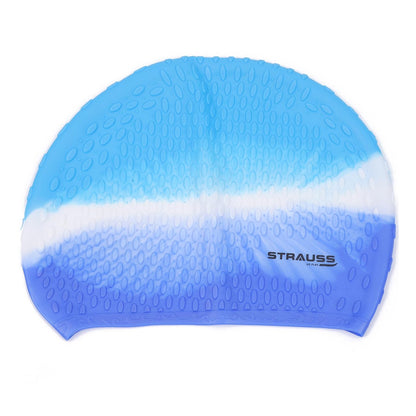 Introducing the Strauss Latest Designed Swimming Cap by Strauss Sports, your essential swimming accessory. This cap, crafted from premium silicone, promises to keep hair clean and dry while providing maximum comfort during your swims. It features a sleek blue design and is suitable for both men and women. Whether you're an enthusiast or a casual swimmer, this cap's versatility accommodates all hair types and lengths, ensuring a snug fit.