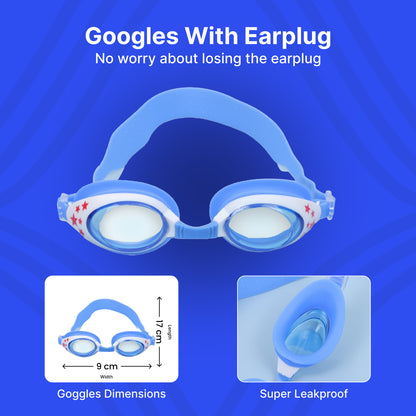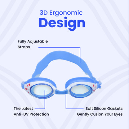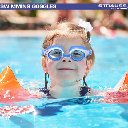STRAUSS Swimming Goggles | Anti Fog & UV Protection | Swimming Goggles for Kids, Adults | Fully Adjustable Swimming Goggles With A Case Cover,(Blue/White)