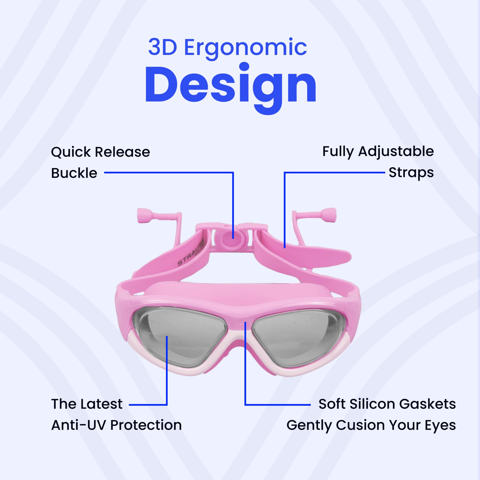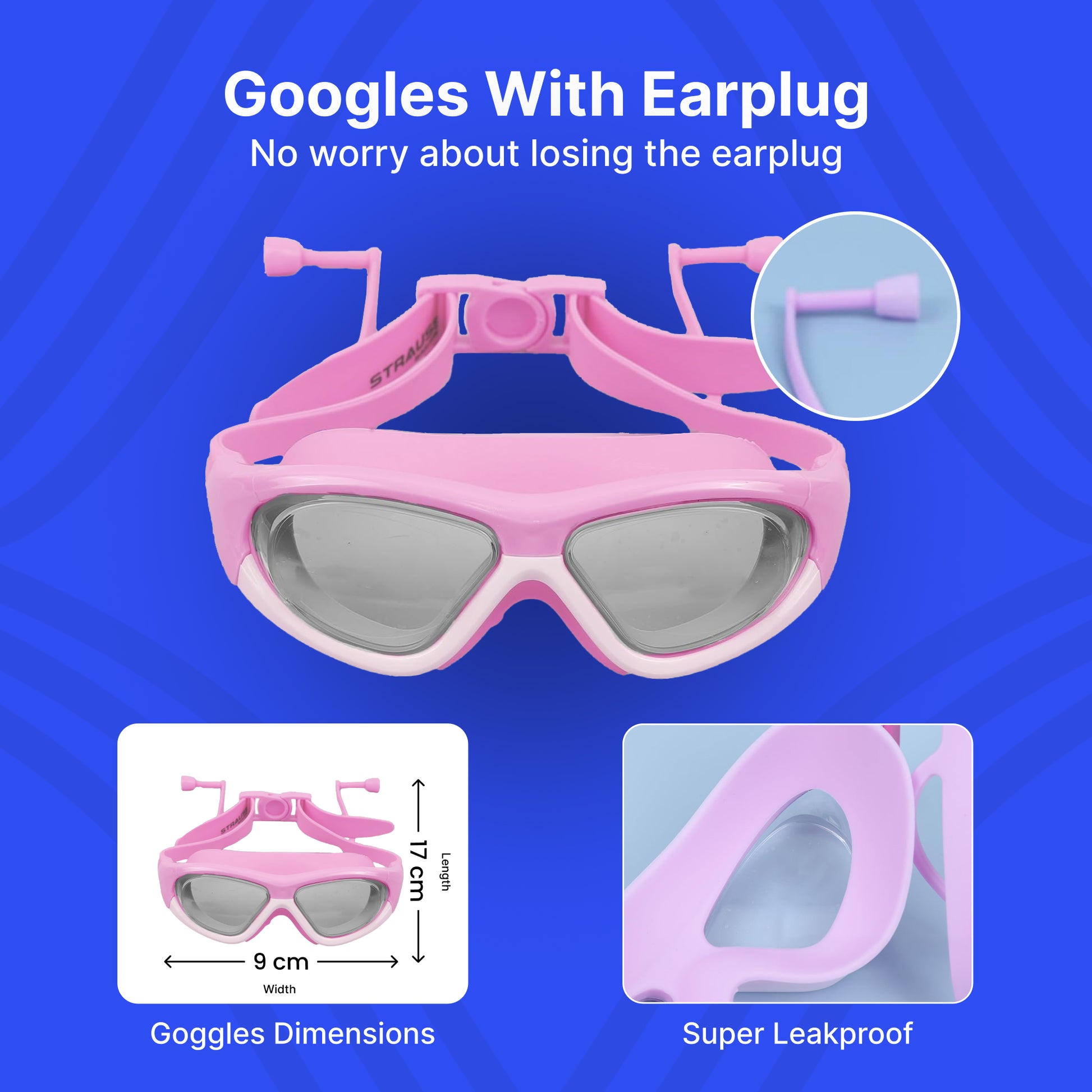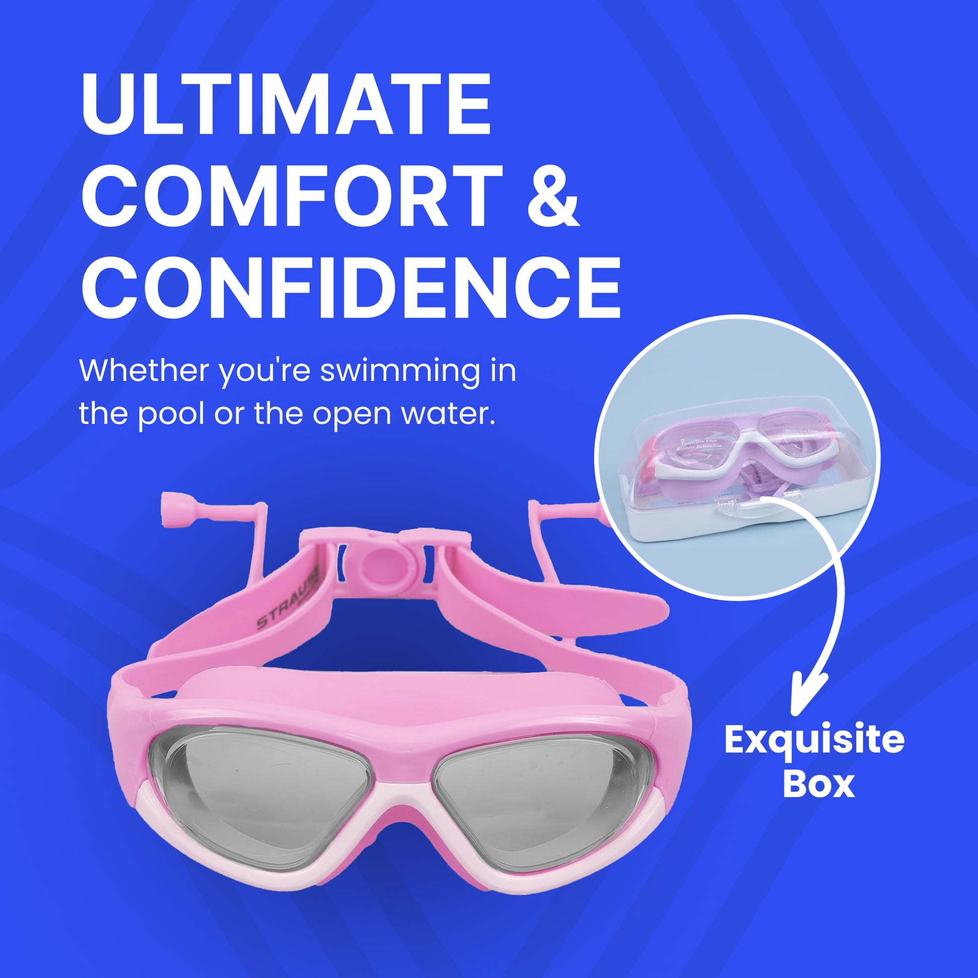 STRAUSS Swimming Goggles | Anti Fog & UV Protection | Swimming Goggles for Kids, Adults | Fully Adjustable Swimming Goggles With A Case Cover,(Pink/White)