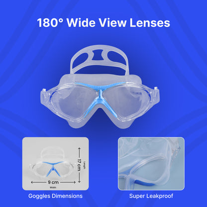 Introducing the STRAUSS Swimming Goggles by Strauss Sports - your clear vision beneath the waves! Designed for adults, these high-performance swimming goggles offer exceptional underwater clarity and comfort. Featuring a sleek Transparent Blue design, these goggles come with a convenient case cover, making it easy to transport and protect them when not in use.