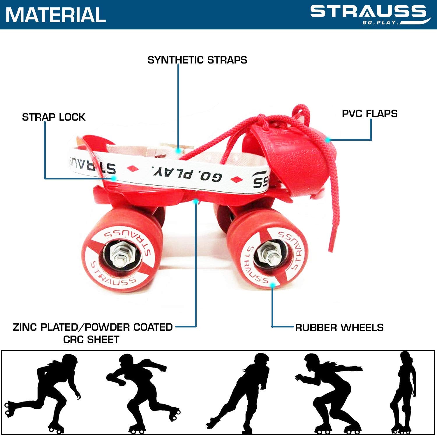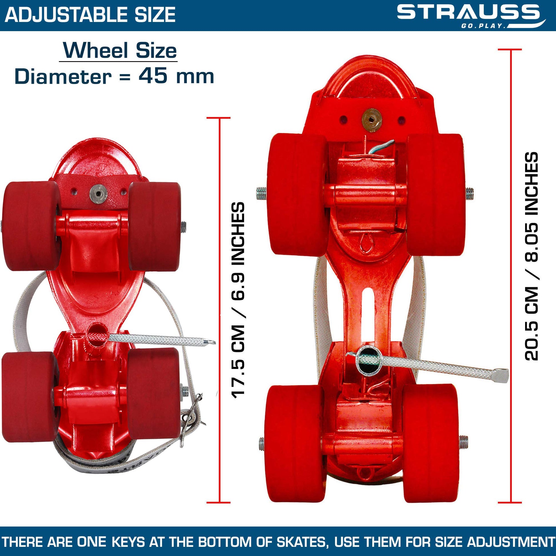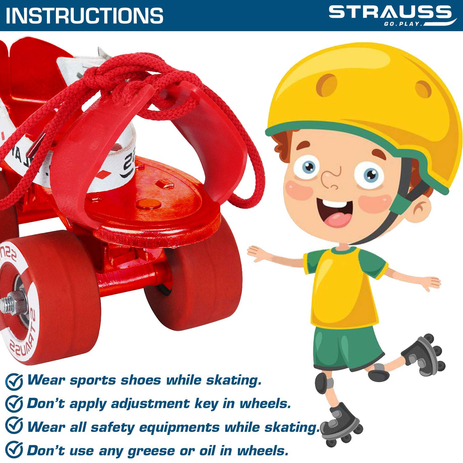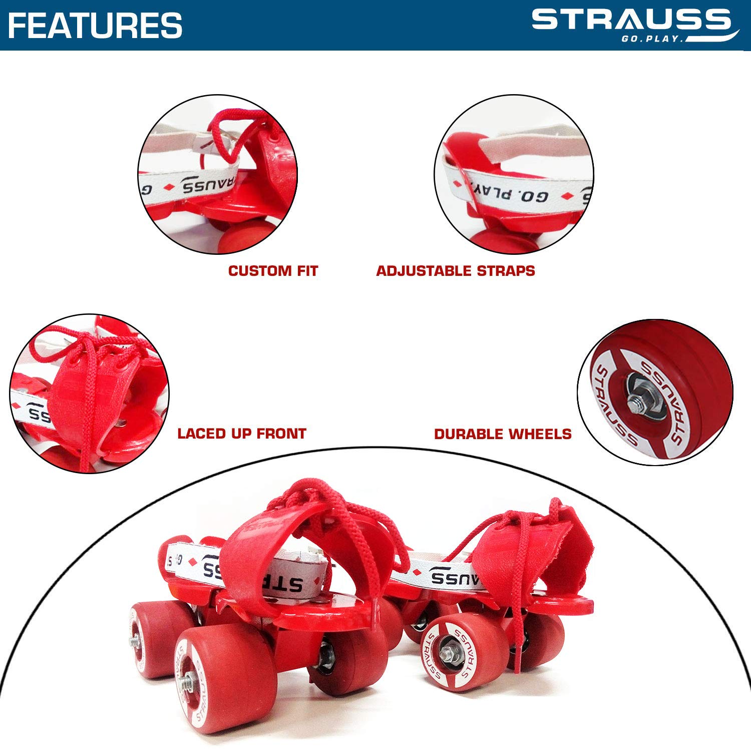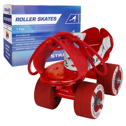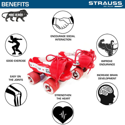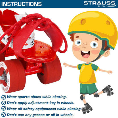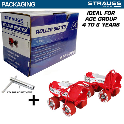 STRAUSS Tenacity Roller Skates | Roller Blades for Kids | Adjustable Shoe Size | 4 Wheels Skating Shoe for Boys and Girls | Ideal for Indoor and Outdoor Skating | Age Group 4-6 Years, (Red)