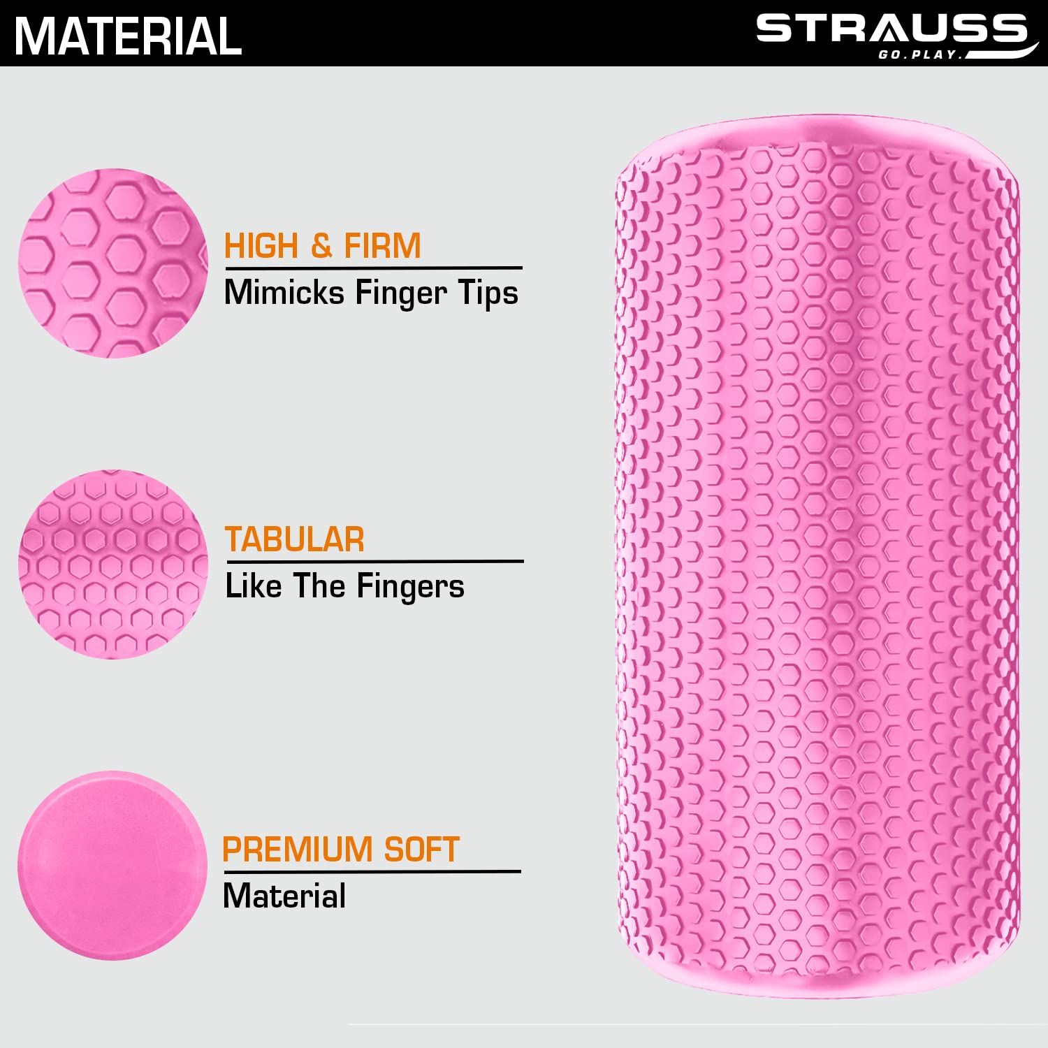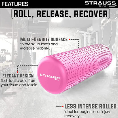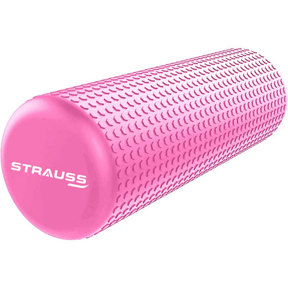 Strauss Yoga Foam Roller | Ideal For Exercise, Muscle Recovery, Physiotherapy, Pain Relief & Myofascial | Deep Tissue Massage Roller 45 Cm, (Pink)