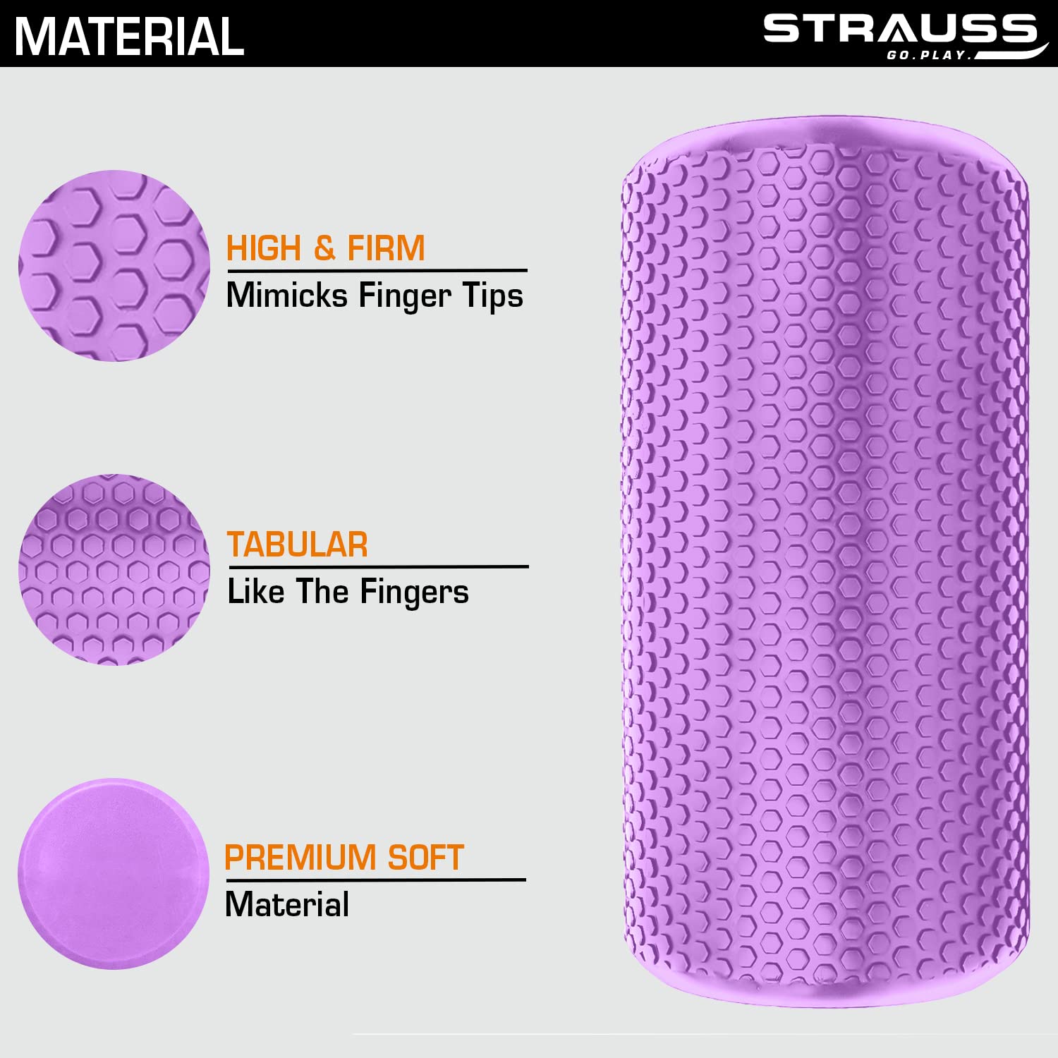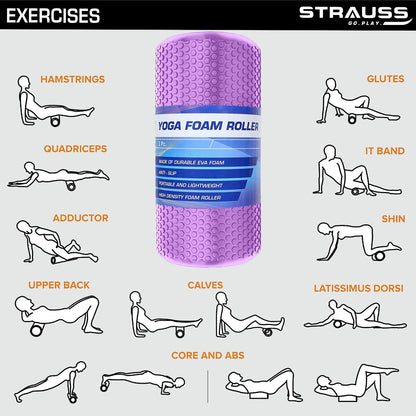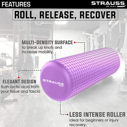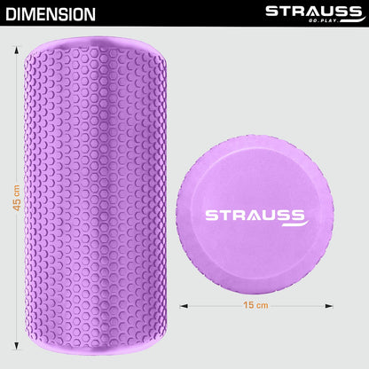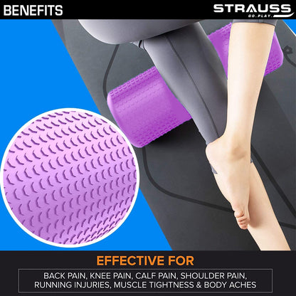 Strauss Yoga Foam Roller | Deep Tissue Massage Roller for Knee Exercise, Muscles Recovery & Physiotherapy | Home Gym Fitness Equipment for Full Body Relaxation and Flexibility | 45cm,(Purple)