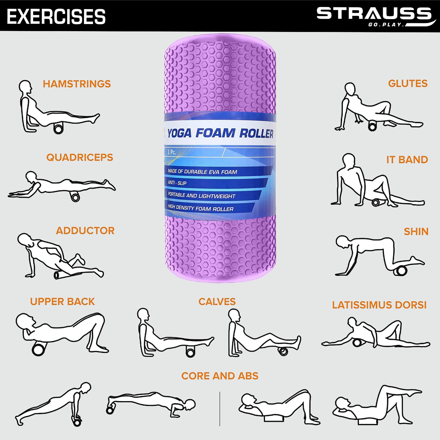 Introducing the Strauss Yoga Foam Roller, your essential companion for exercise, muscle recovery, physiotherapy, and pain relief. This 45 cm foam roller is crafted from high-density EVA foam, offering durability and the perfect firmness for effective deep tissue massages. With its vibrant Purple color, this roller is not only functional but also stylish in any fitness setting.