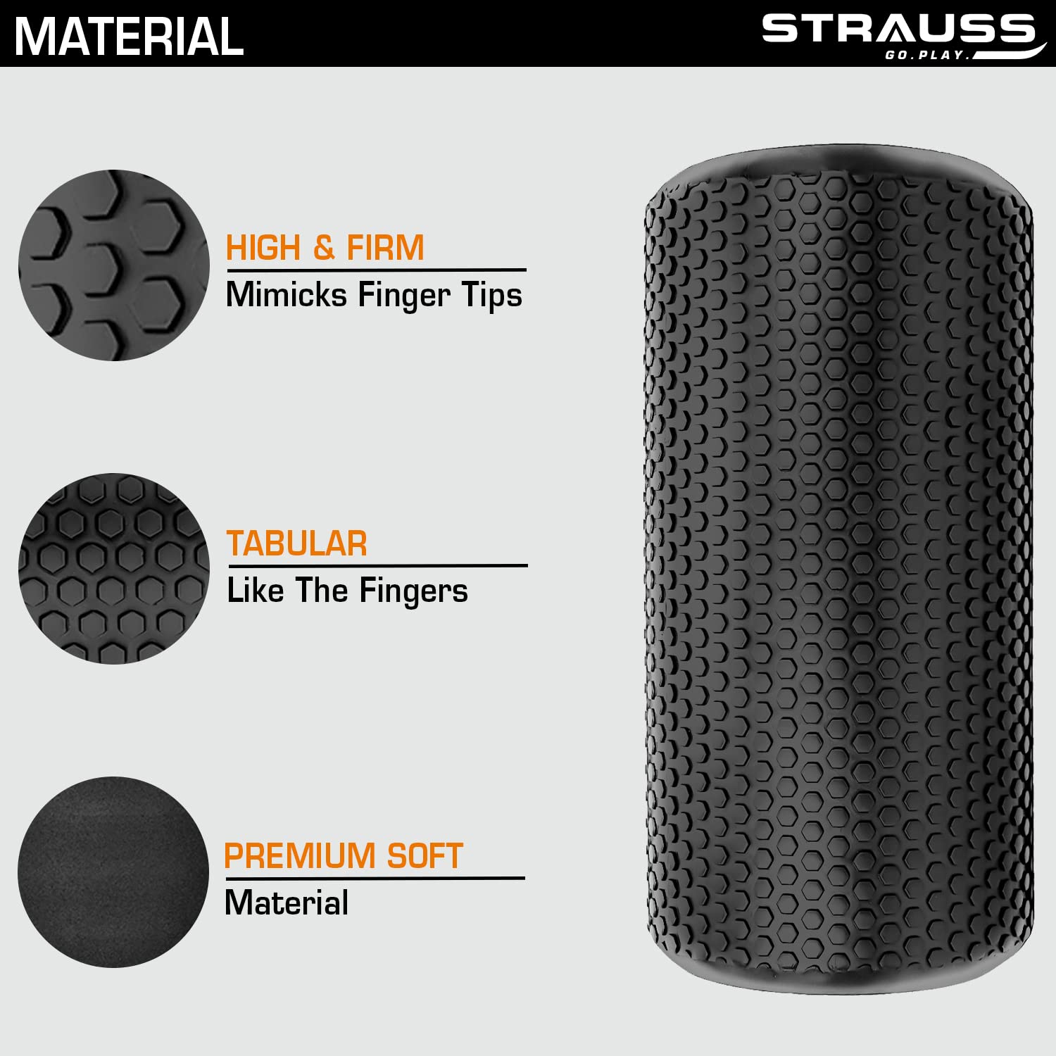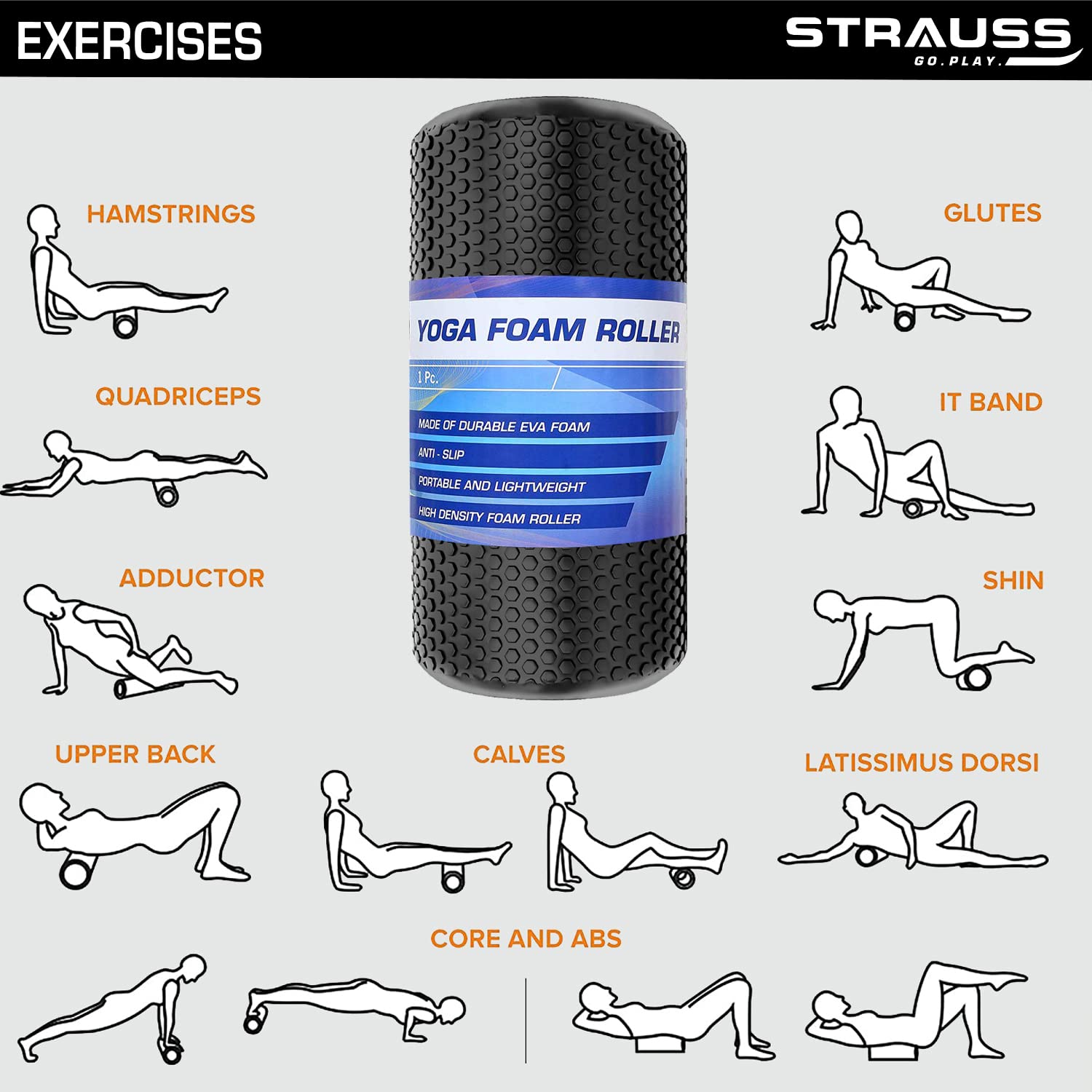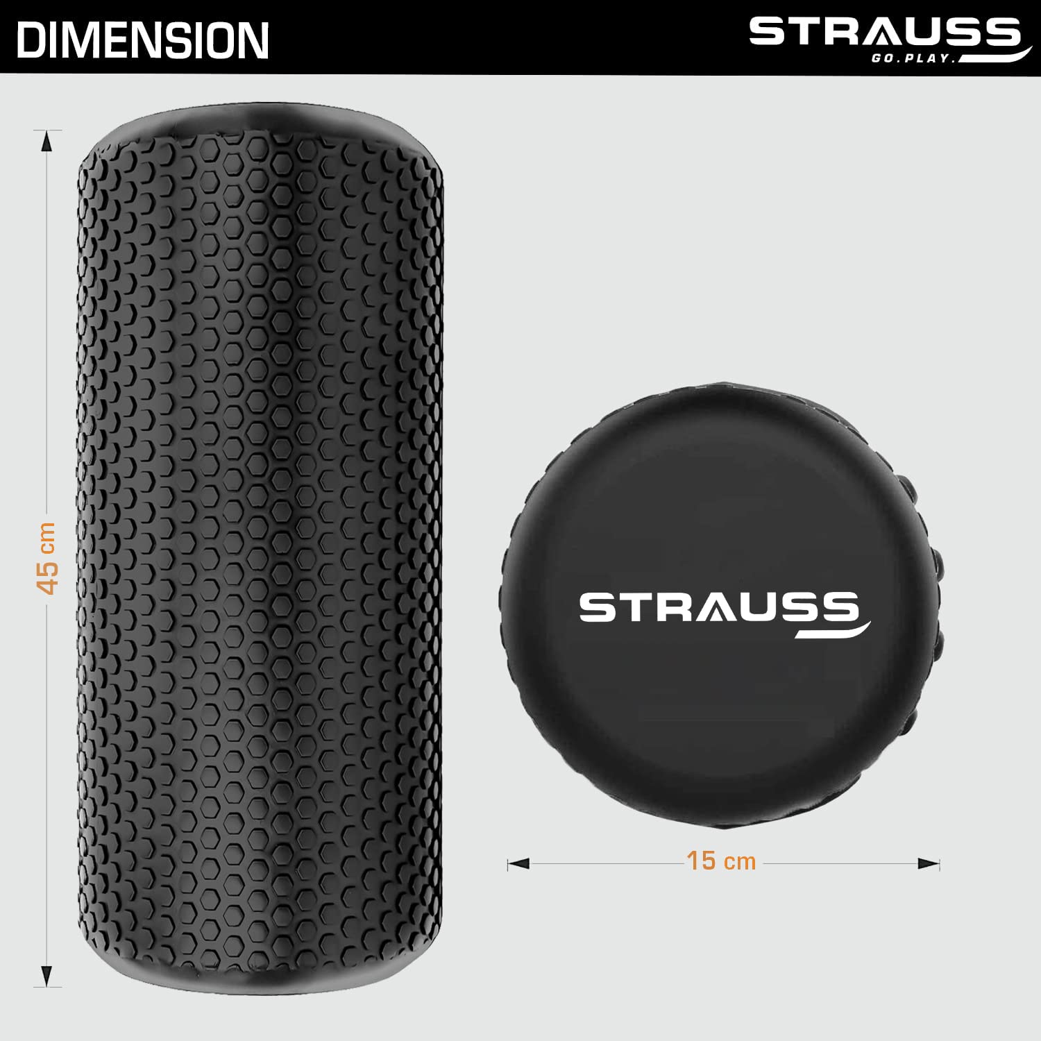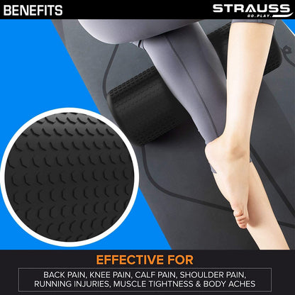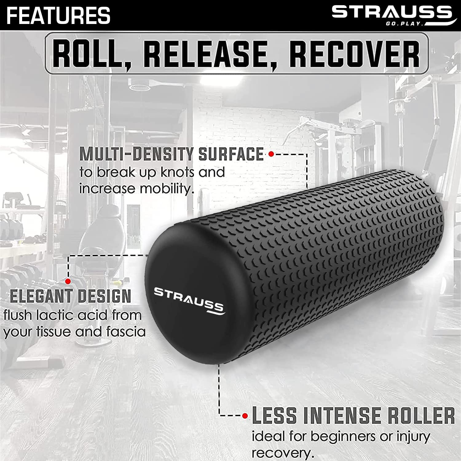 Strauss Yoga Foam Roller | Deep Tissue Massage Roller for Knee Exercise, Muscles Recovery & Physiotherapy | Home Gym Fitness Equipment for Full Body Relaxation and Flexibility | 45cm,(Black)