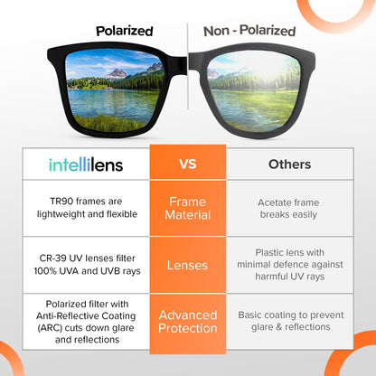 Introducing the Stylish Square Polarized Men Sunglasses by Intellilens, your perfect companion for any outdoor adventure. Featuring premium polarized lenses that provide 100% UV protection and a lightweight, durable design, these sunglasses not only elevate your style but also ensure your eyes stay safe and comfortable under the sun. These black square sunglasses are designed for medium faces and are made from high-quality polycarbonate, making them both sturdy and light.