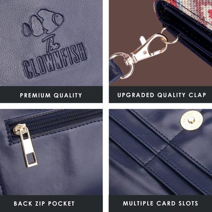 THE CLOWNFISH Women Jolene Printed Handicraft Fabric & Vegan Leather Ladies Wristlet Purse Sling Bag With Multiple Card Slots (Multicolour-Diamond Design), Multicolor