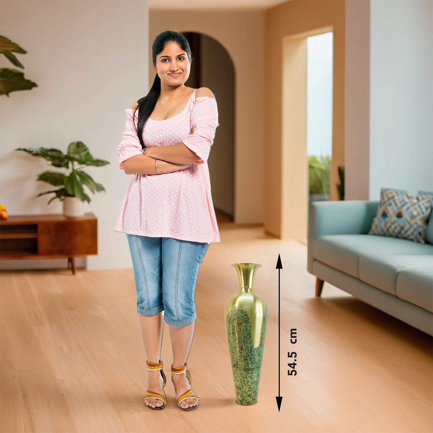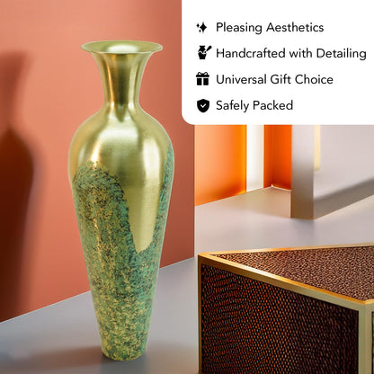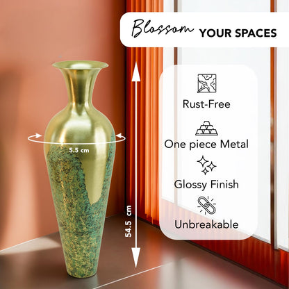 Ekhasa Tall Big Metallic Flower Vase for Home Decor | Abstract Long Flower Vase Gift for Weddings, Housewarming | Large Sofa Side Metal Vase for Living Room, Office, Bed Corner (Green & Gold)
