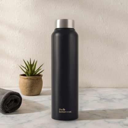 The Better Home 1000 Stainless Steel Water Bottle 1 Litre | Rust-Proof, Lightweight, Leak-Proof & Durable | Eco-Friendly, Non-Toxic & BPA Free Water Bottles 1+ Litre | Black (Pack of 1)