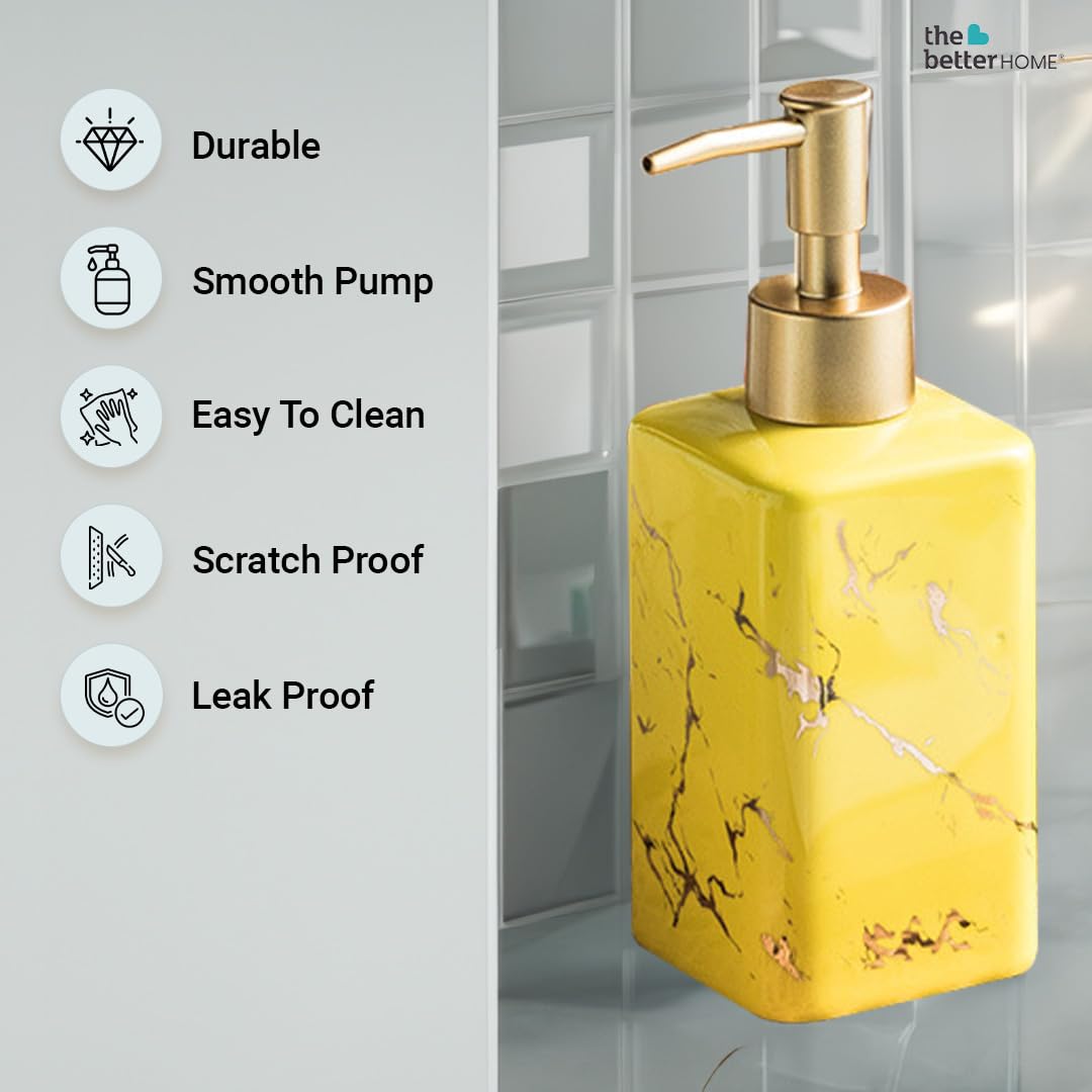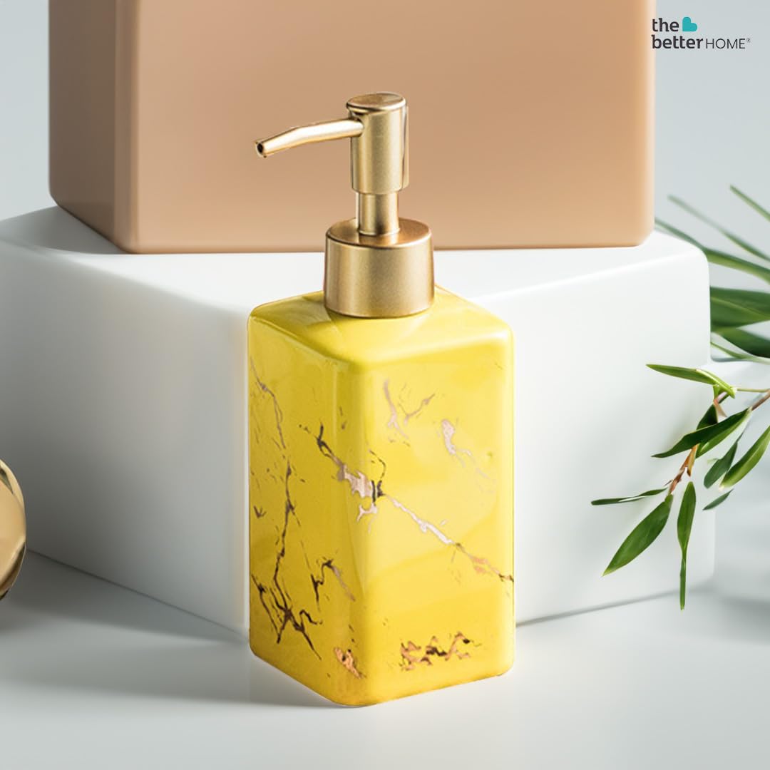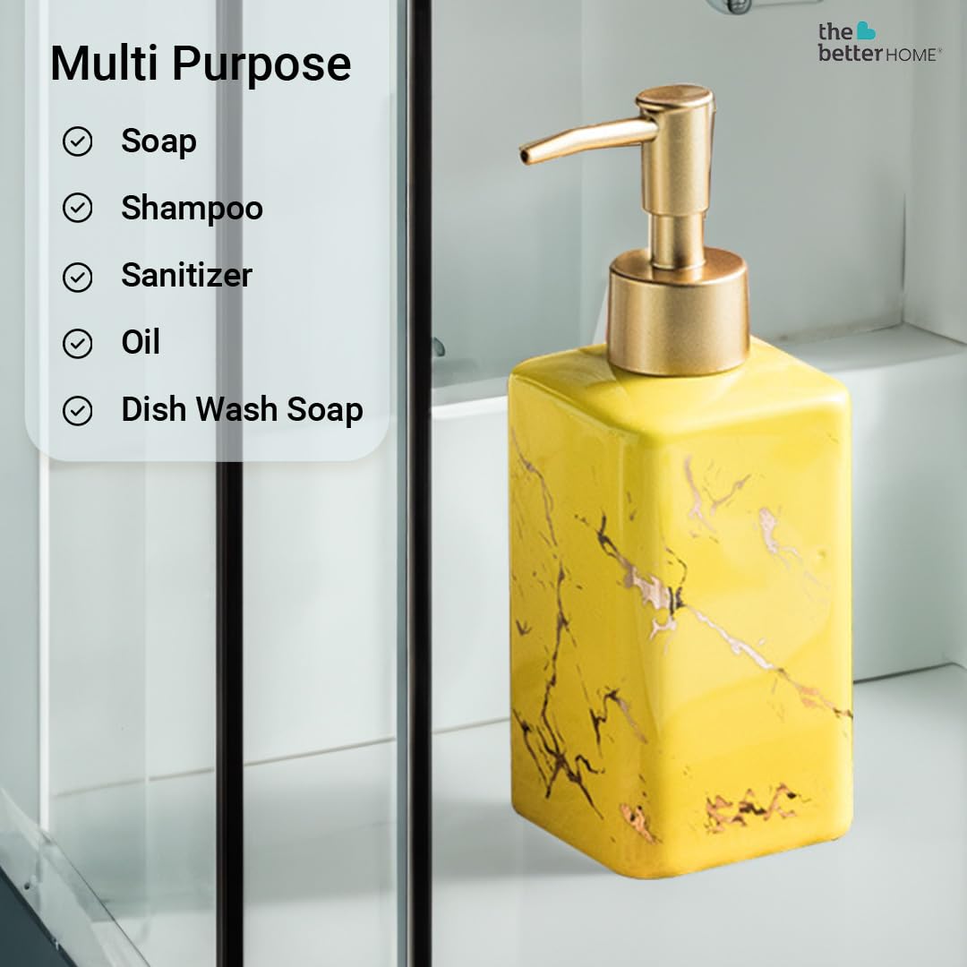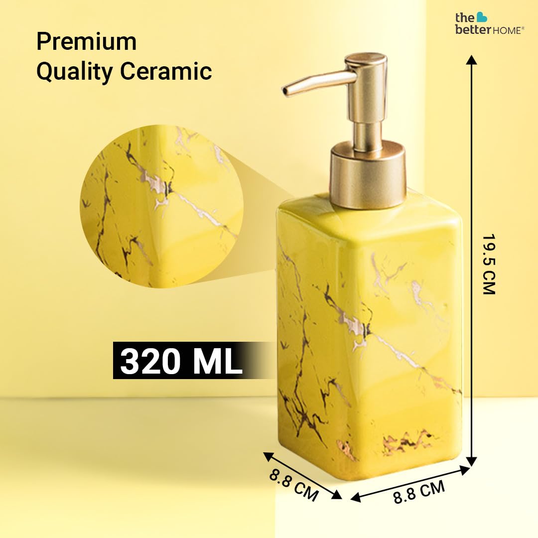 The Better Home 320ml Dispenser Bottle - Yellow (Set of 3)| Ceramic Liquid Dispenser for Kitchen, Wash-Basin, and Bathroom | Ideal for Shampoo, Hand Wash, Sanitizer, Lotion, and More