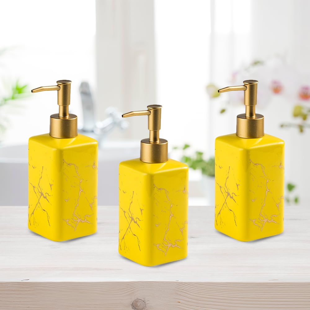 320ml Dispenser Bottle - Yellow (Set of 3)| Ceramic Liquid Dispenser for Kitchen, Wash-Basin, and Bathroom | Ideal for Shampoo, Hand Wash, Sanitizer, Lotion, and More