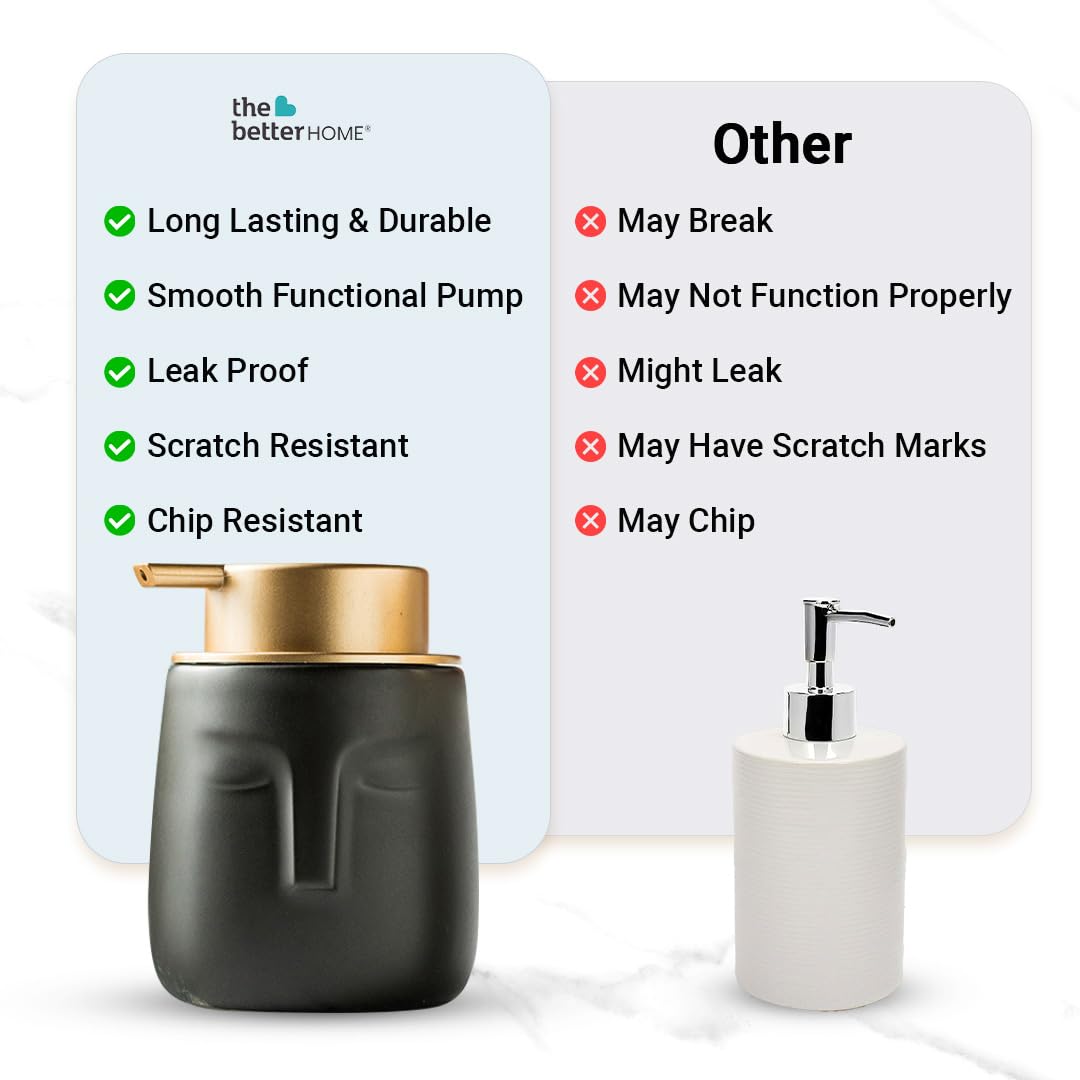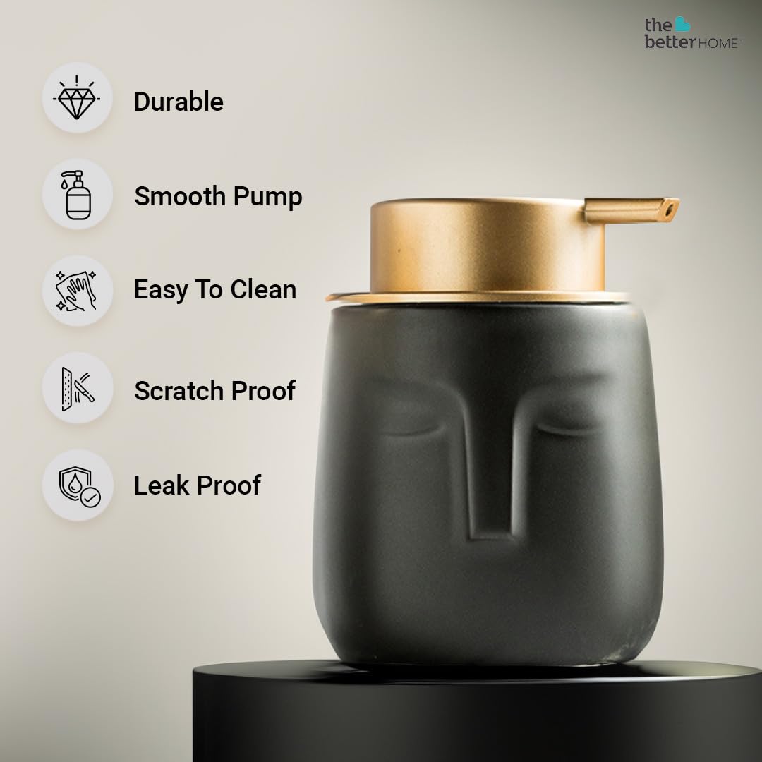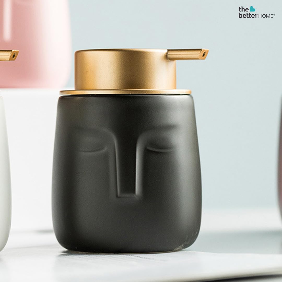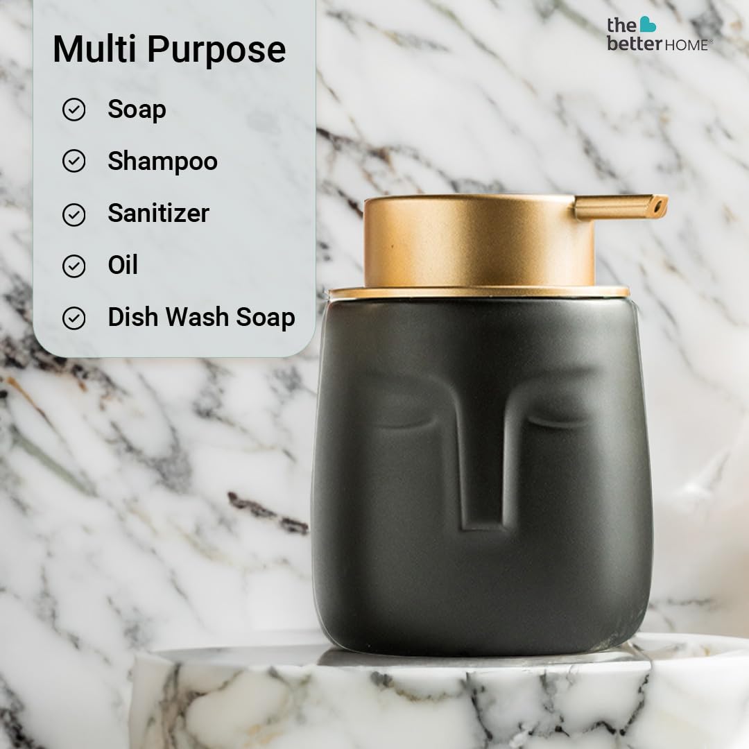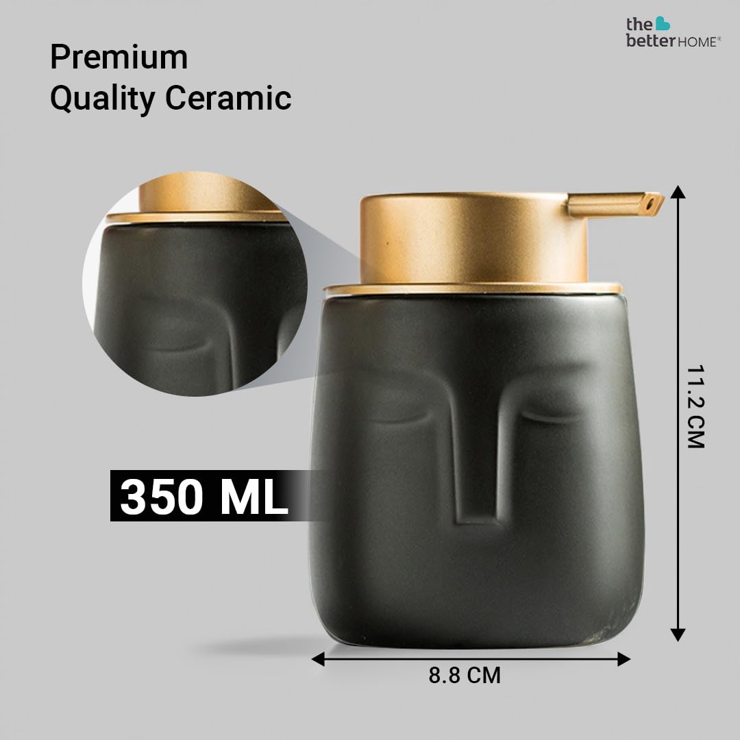 The Better Home 350ml Soap Dispenser Bottle - Black (Set of 2) |Ceramic Liquid Pump Dispenser for Kitchen, Wash-Basin, and Bathroom