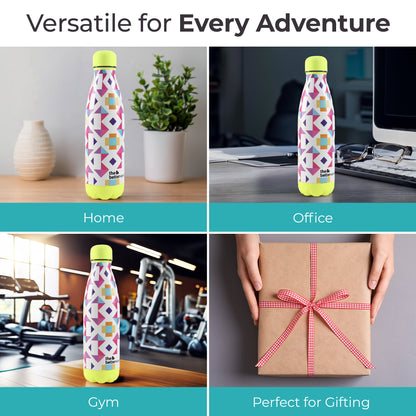 500ml Insulated Stainless Steel Water Bottle | upto 18 Hours Insulation | Insulated Water Bottle | Airtight | Leak Proof | BPA Free | Prism Play Print