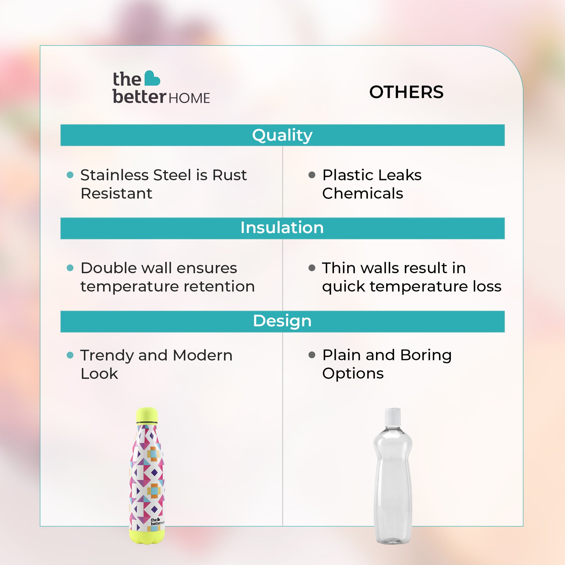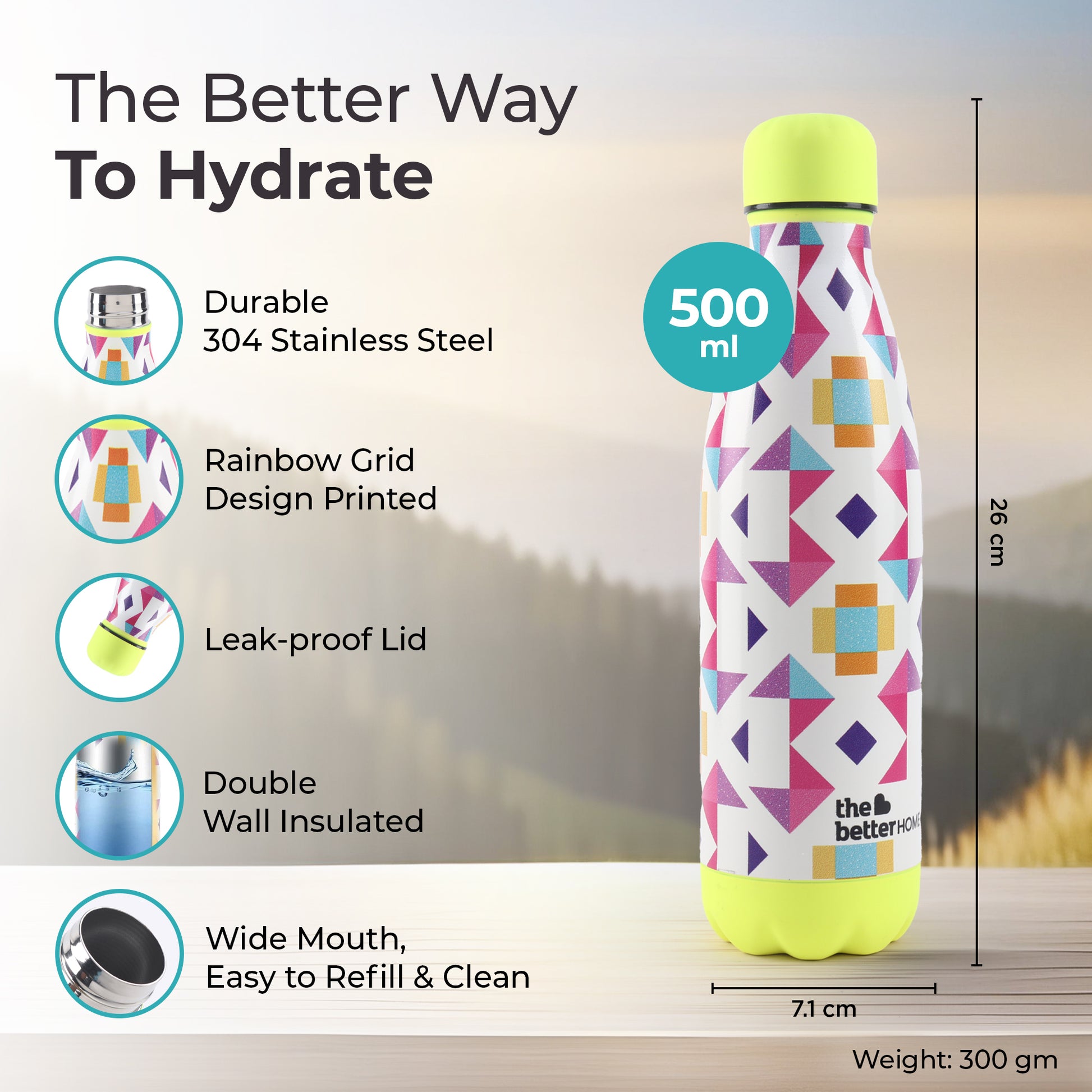 The Better Home 500ml Insulated Stainless Steel Water Bottle | upto 18 Hours Insulation | Insulated Water Bottle | Airtight | Leak Proof | BPA Free | Prism Play Print