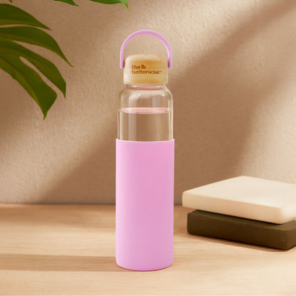 The Better Home Borosilicate Glass Water Bottle with Sleeve (500ml) | Bamboo Lid & Silicon Sleeve | Fridge Water Bottles for Home, Office & Gym | Water Bottles for Fridge (Pink, Pack of 1)