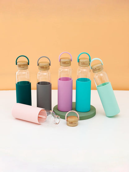 • Durable Silicon Sleeve: Featuring a sturdy silicon sleeve, this bottle provides a perfect non-slip grip and protects the glass from accidental drops, all while adding a splash of color to your daily hydration.
