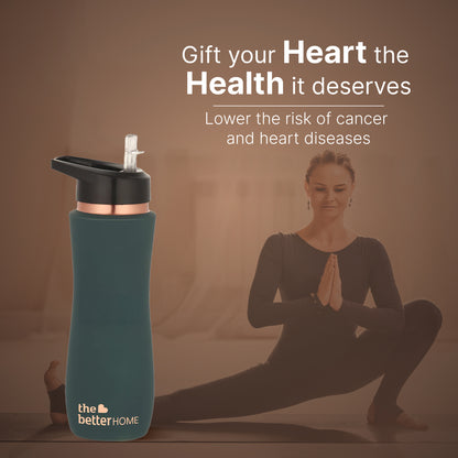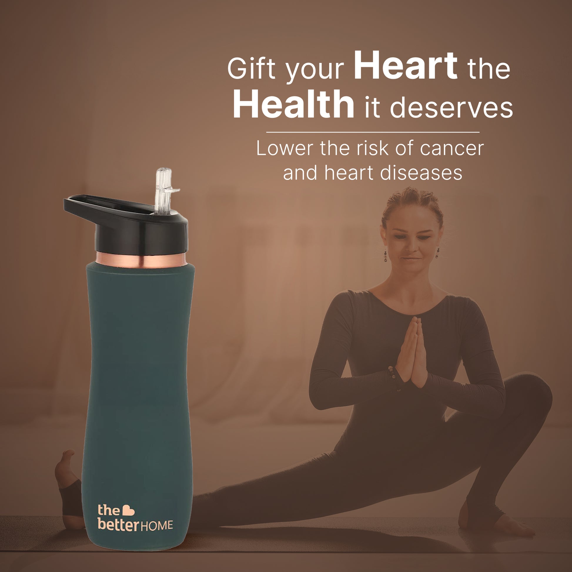 The Better Home Copper Water Bottle with Sipper (700ml), 100% Pure Copper Bottle, Sipper Water Bottle for Adults, BPA Free & Leakproof with Anti Oxidant Properties of Copper (Green)