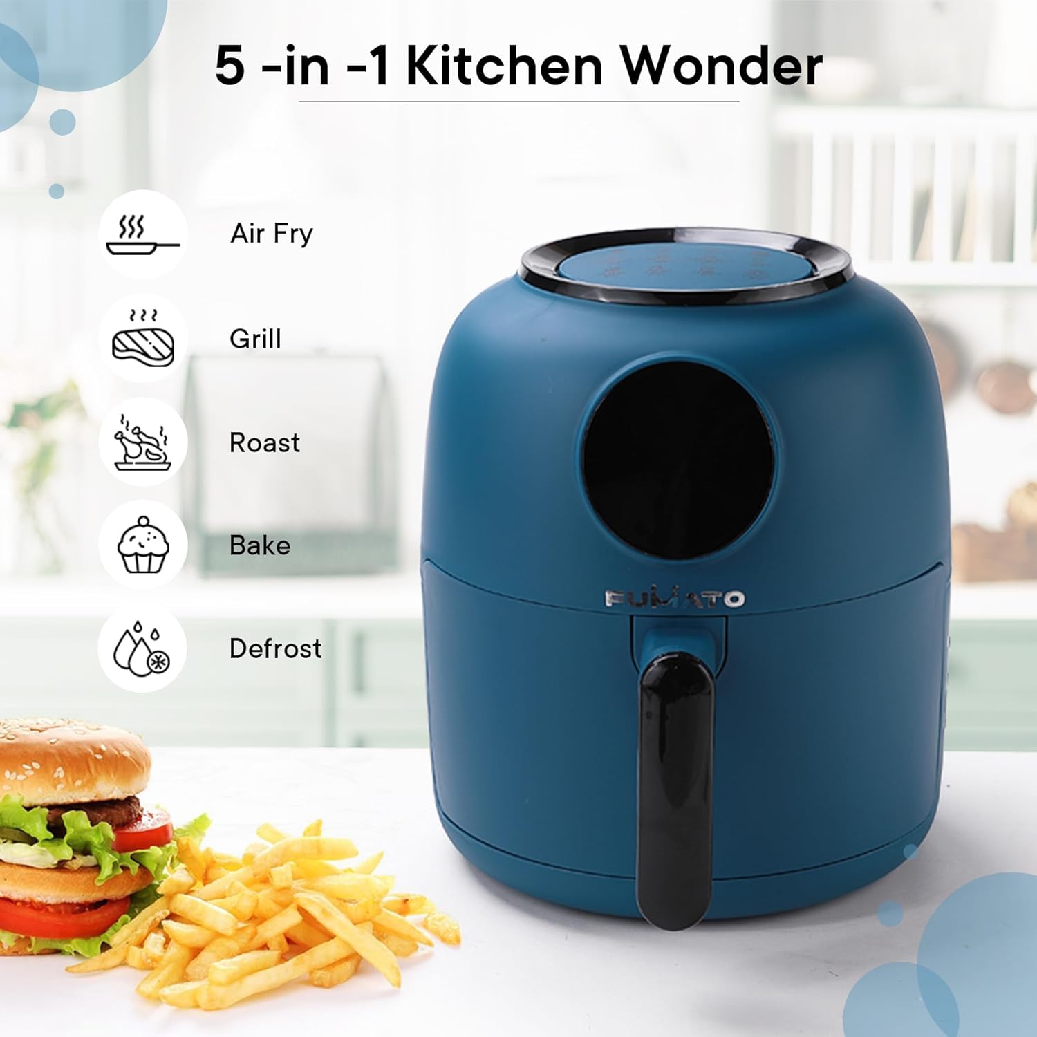 FUMATO Aerochef Air fryer With Digital Touchscreen Panel 4.5L Blue & Stainless Steel Water Bottle 1 Litre,Pack of 5, Black