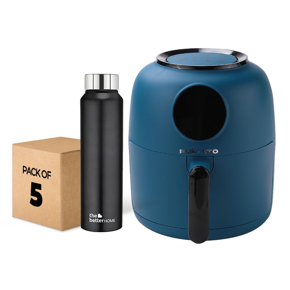 The Better Home FUMATO Aerochef Air fryer With Digital Touchscreen Panel 4.5L Blue & Stainless Steel Water Bottle 1 Litre,Pack of 5, Black