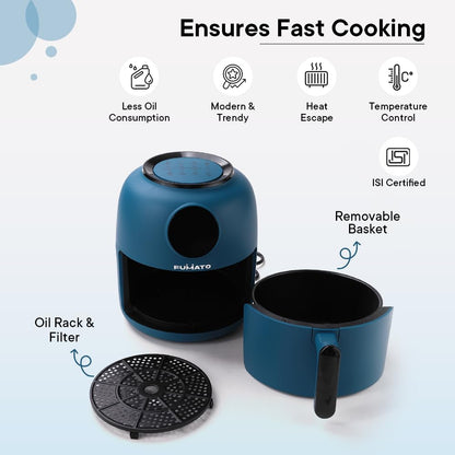 • Modern Aesthetics: Available in a chic blue finish, the Aerochef Air Fryer and the stylish black water bottle enhance your home décor while adding a touch of sophistication.