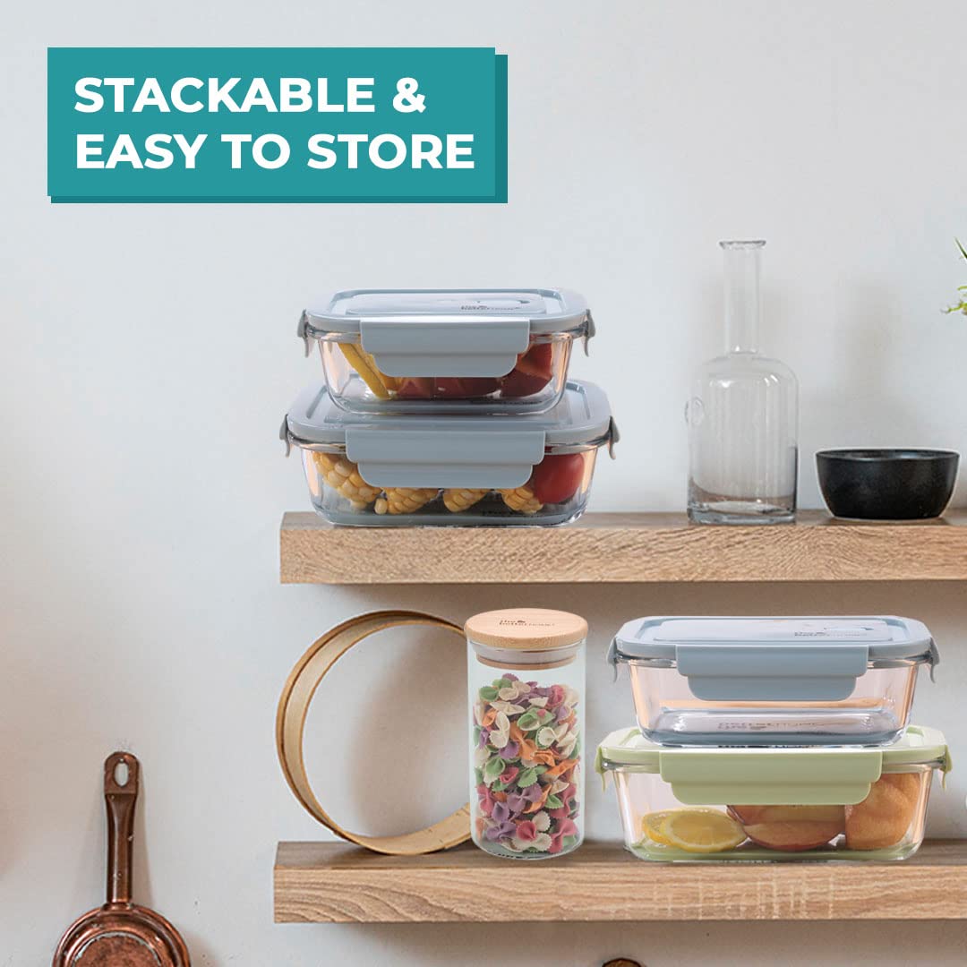 The Better Home Borosilicate Glass Lunch Box Set of 2 | Tiffin Box for Office for Men Women |Lunch Box for Women School Kids |Microwave Safe Leak Proof Airtight Lunch Boxes (680ml & 1040ml)