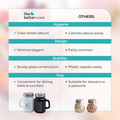 The Better Home Glass Salt & Pepper Shakers Set- Black & White (Pack of 6) | Moisture-Proof Seasoning Shakers with Handle | Salt & Pepper Containers | Salt & Pepper Container Set for Dining Table
