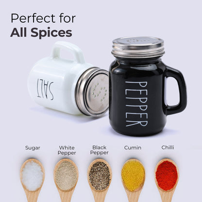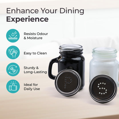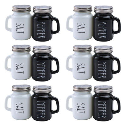Glass Salt & Pepper Shakers Set- Black & White (Pack of 6) | Moisture-Proof Seasoning Shakers with Handle | Salt & Pepper Containers | Salt & Pepper Container Set for Dining Table