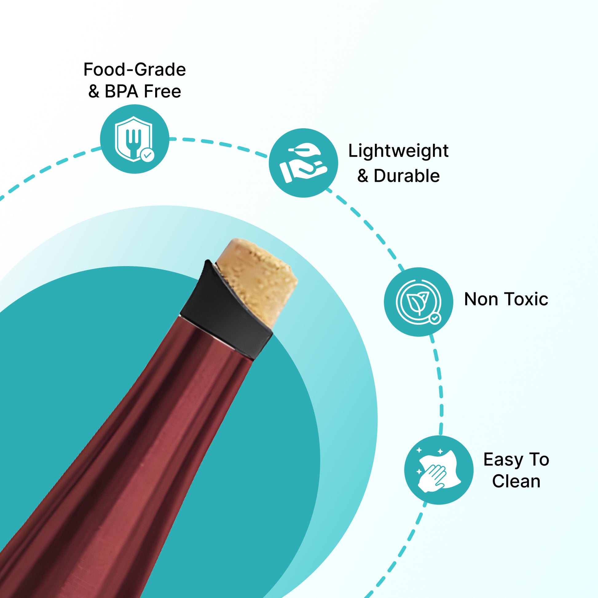 • Airtight & Leak-Proof: The cork cap ensures your beverages are secure and free from leaks, making it perfect for use at the gym, office, or school.