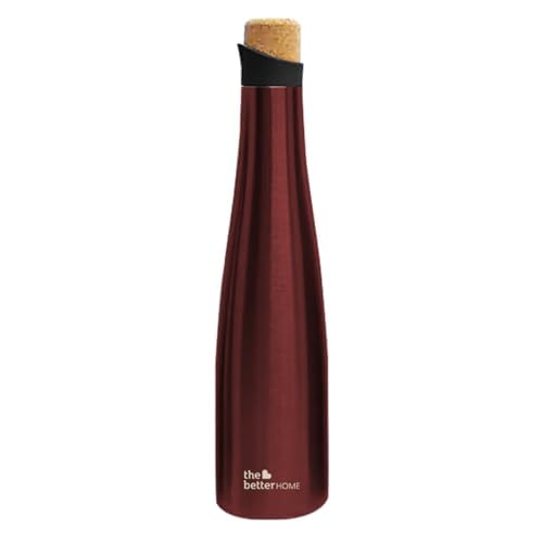 The Better Home Insulated Stainless Steel Water Bottle 500ml | 18 Hours Insulation Cork Cap | Hot Cold Gym Office School | Airtight Leak Proof BPA Free | Wine Colour | 1 Bottle Pack
