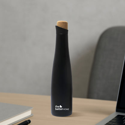 The Better Home Insulated Stainless Steel Bottle with Cork Cap 500ml | 18h of Insulation | Hot and Cold Water Bottle for Kids School Office Gym | Anti Rust | Leak Proof | BPA Free | Black