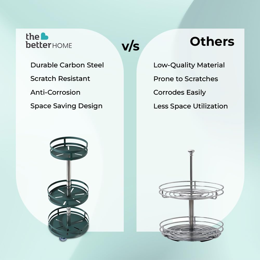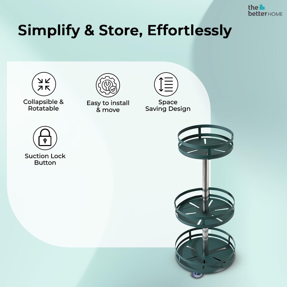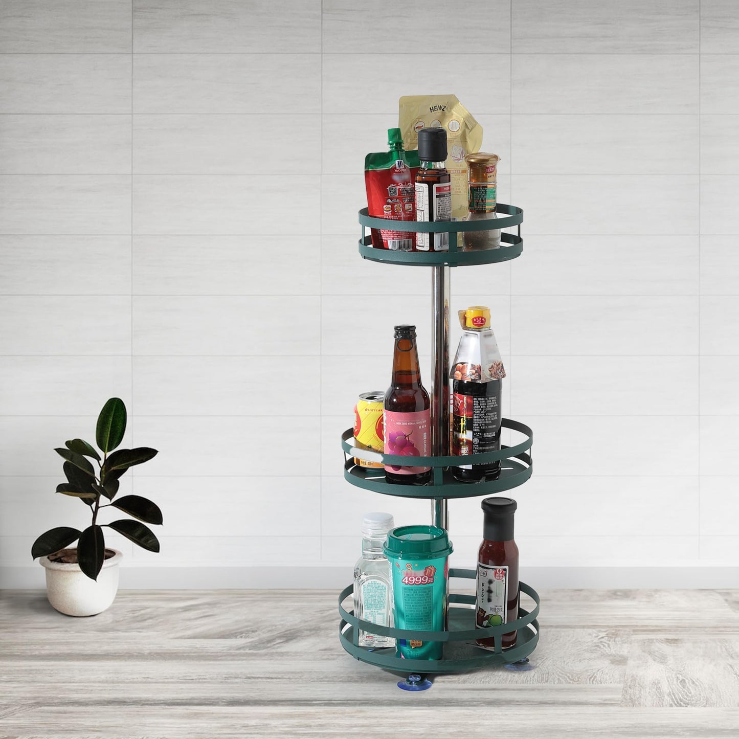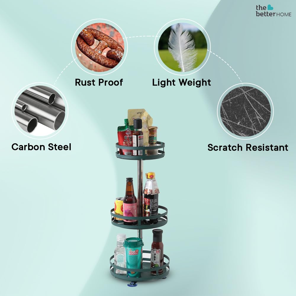 The Better Home Revolving dressing rack | Stackable Kitchen Basket For Storage | Carbon Steel Collapsible Foldable Basket For Fruits And Vegetables | Rust-Res istant | Unbreakable (Circular - 3 layer)