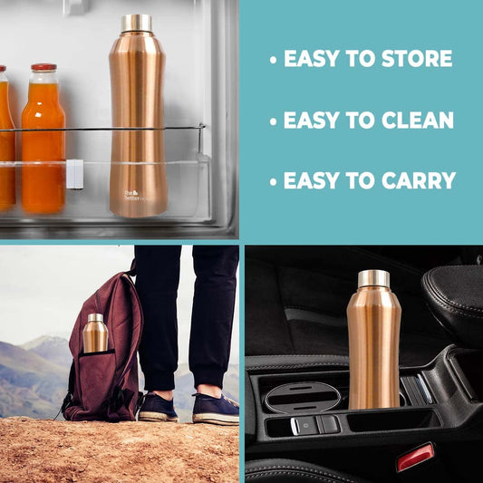The circular surface of the sipper bottle makes it easy to store in refrigerators and the sturdy strap makes it your perfect travel companion.