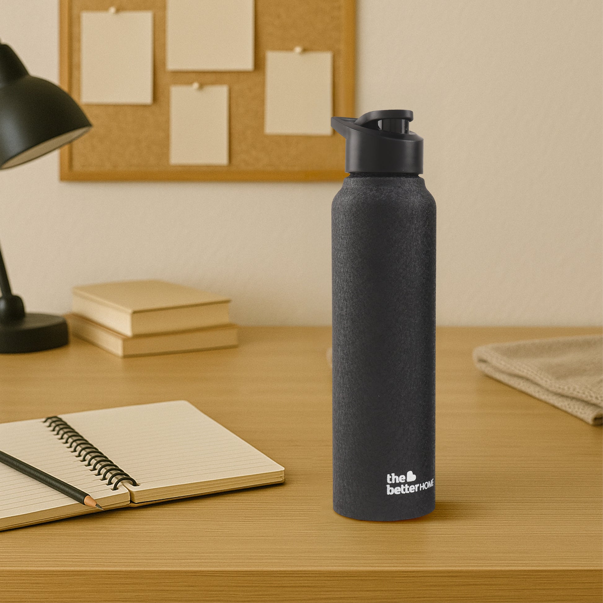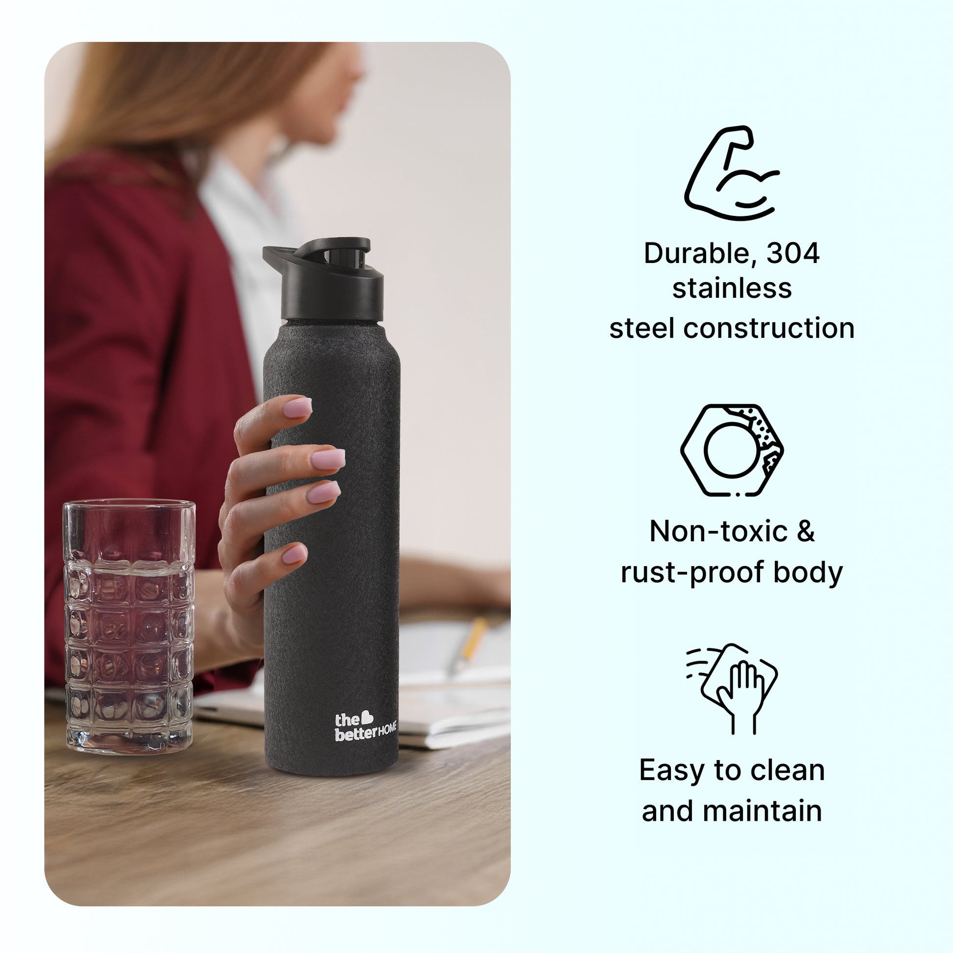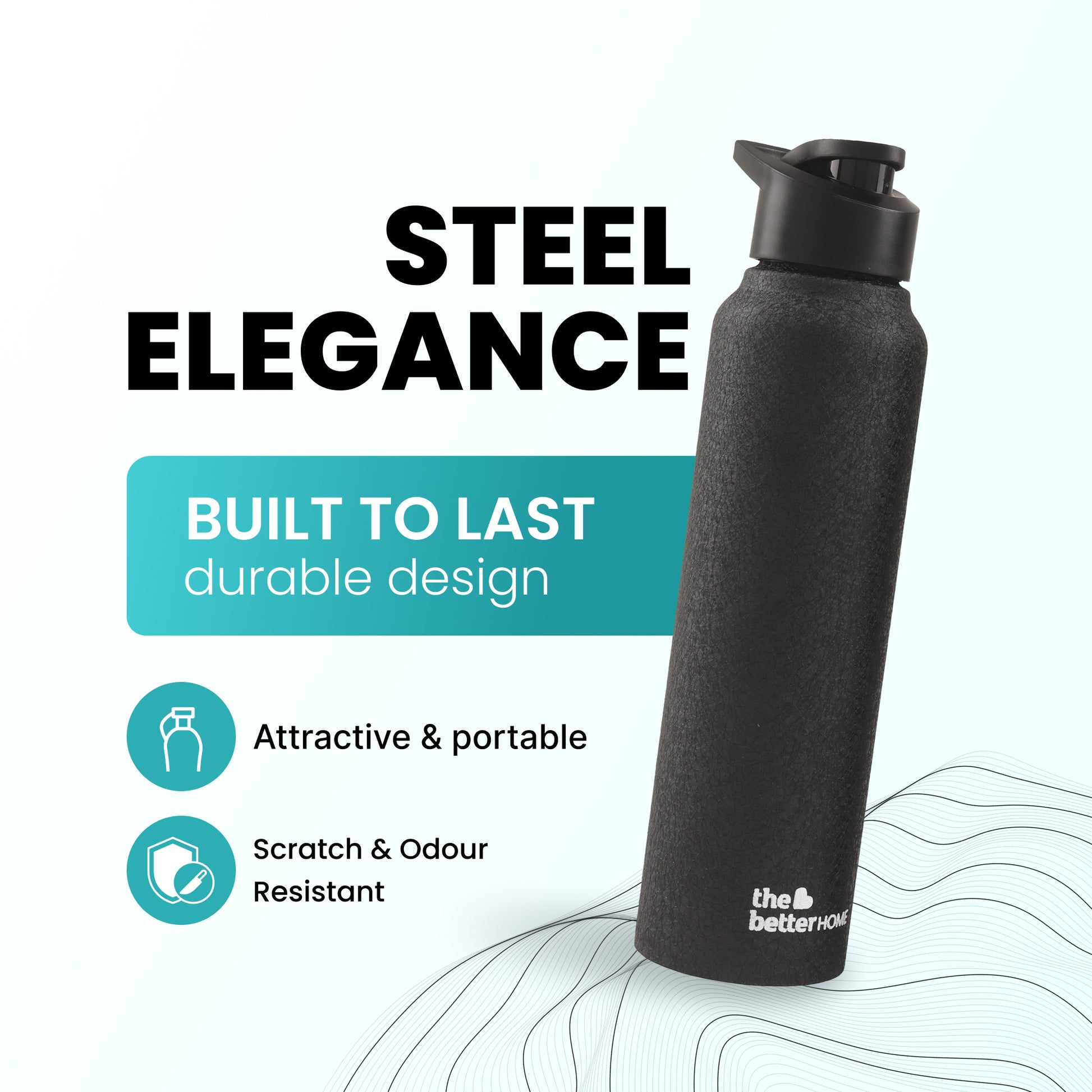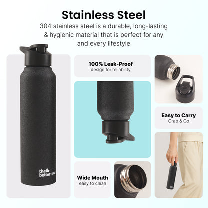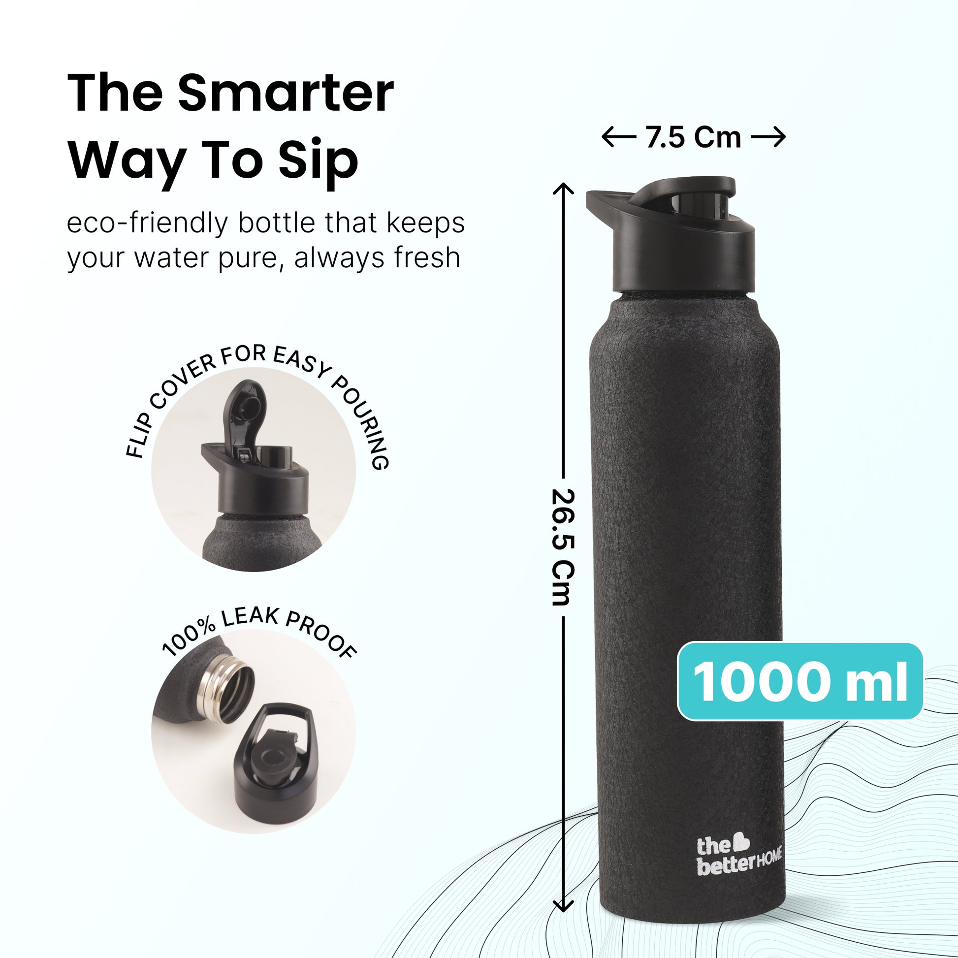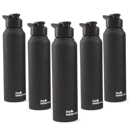 The Better Home Stainless Steel 1 Litre Water Bottle With Sipper Cap | Pack of 6 | Travel Sipper Bottle For Adults/School/Office | Water Bottle For Kids | Black (P06_BLACK)