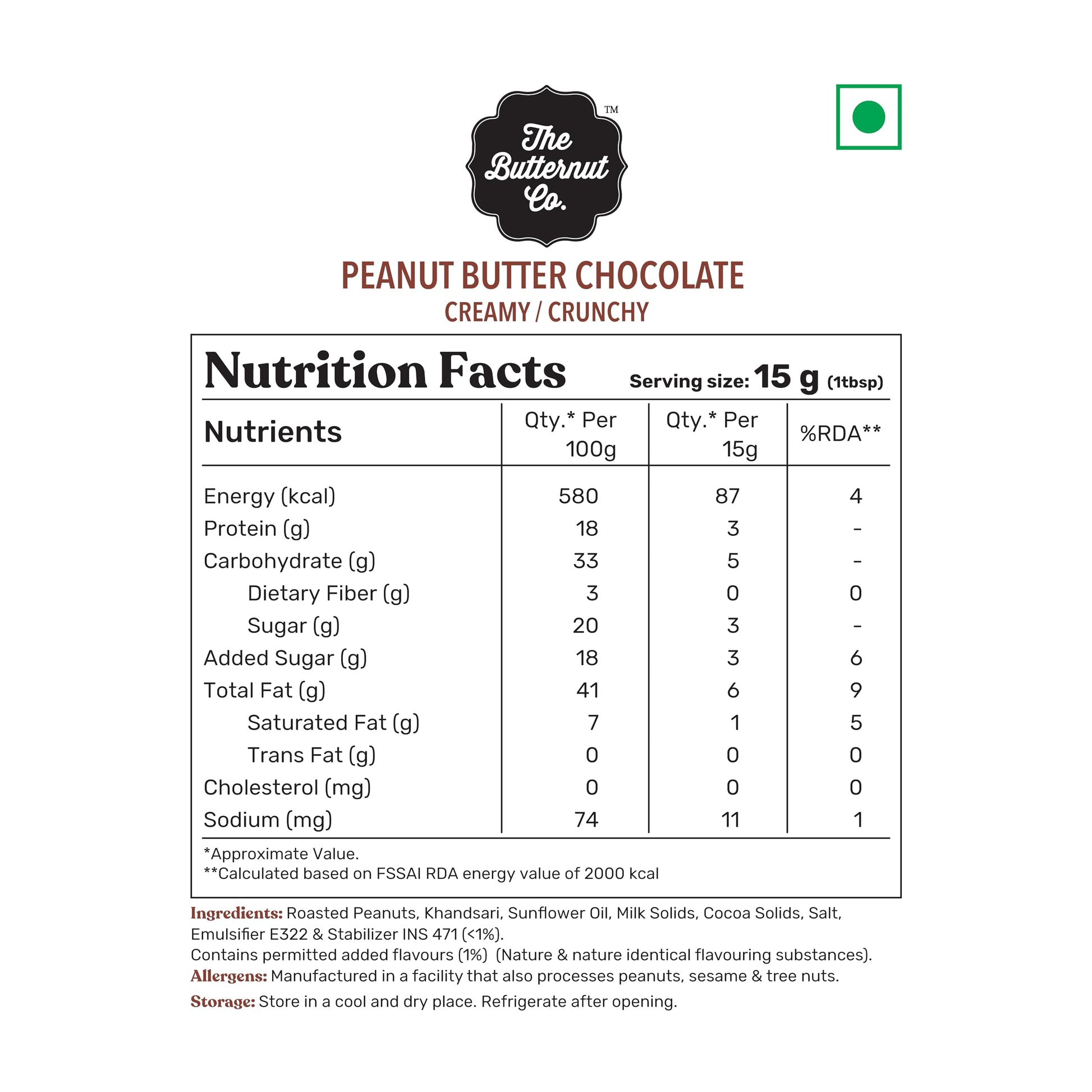 The Butternut Co. Peanut Butter Chocolate,Crunchy | 18 g Protein | No Refined Sugar | High Protein, Nutritious and Delicious Treat for Breakfast | All Natural| No Cholesterol - 800 g (Pack of 1)