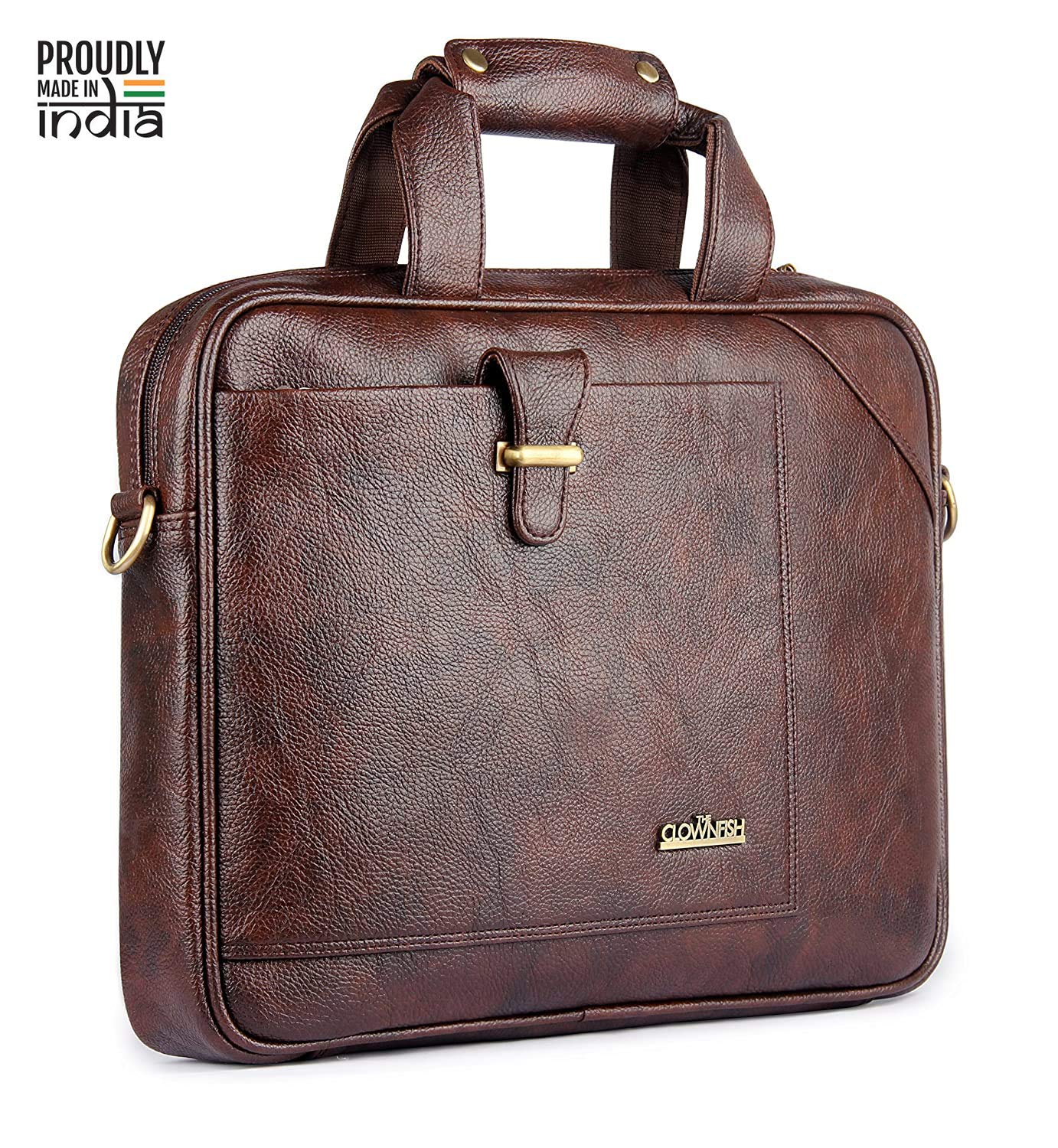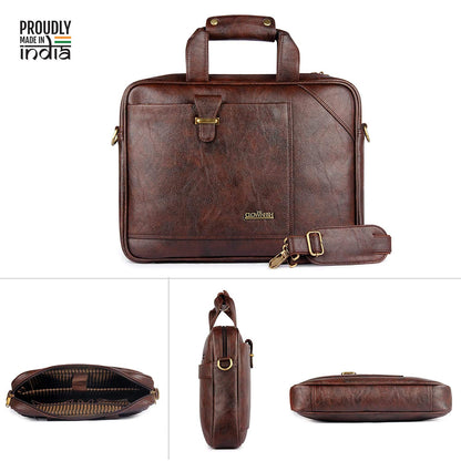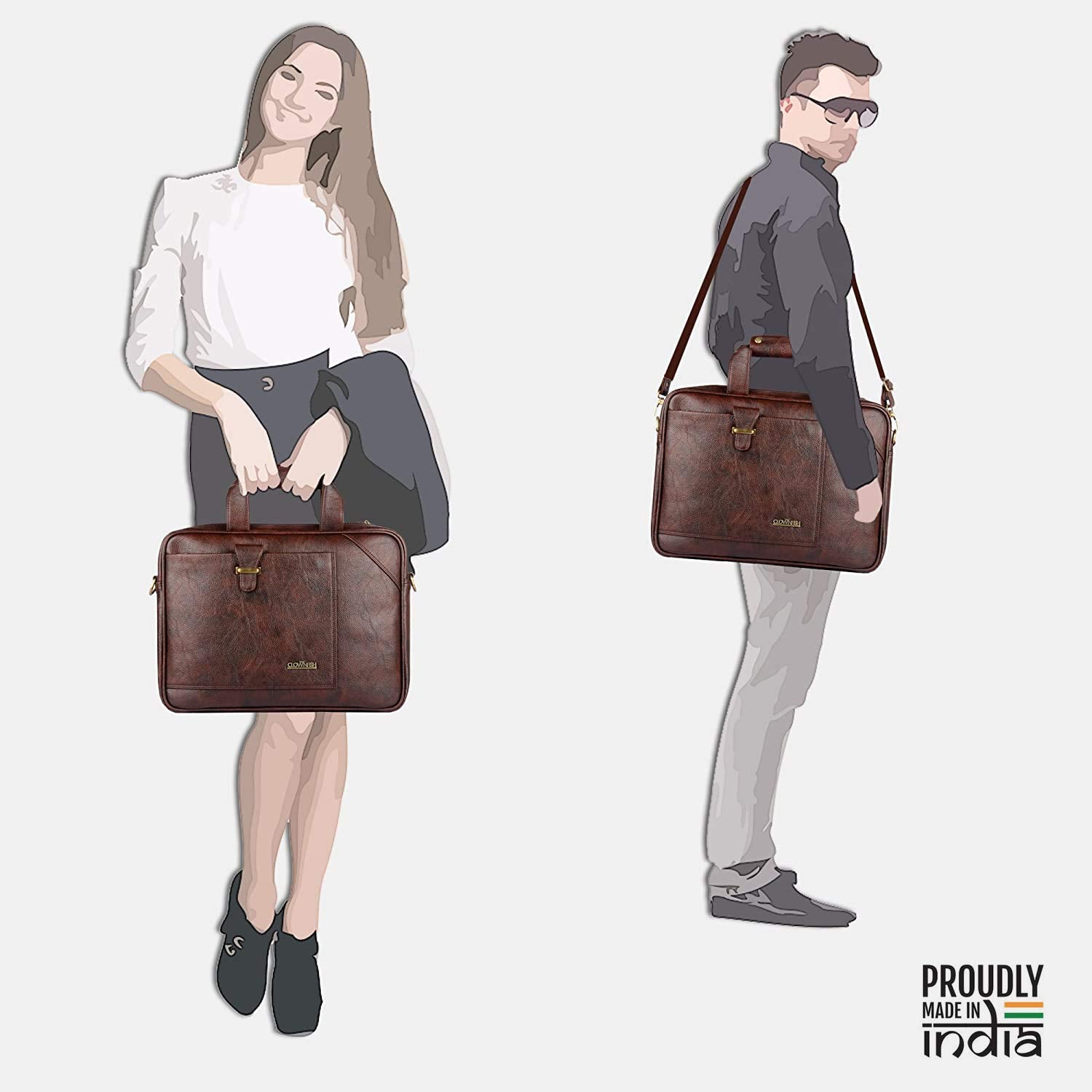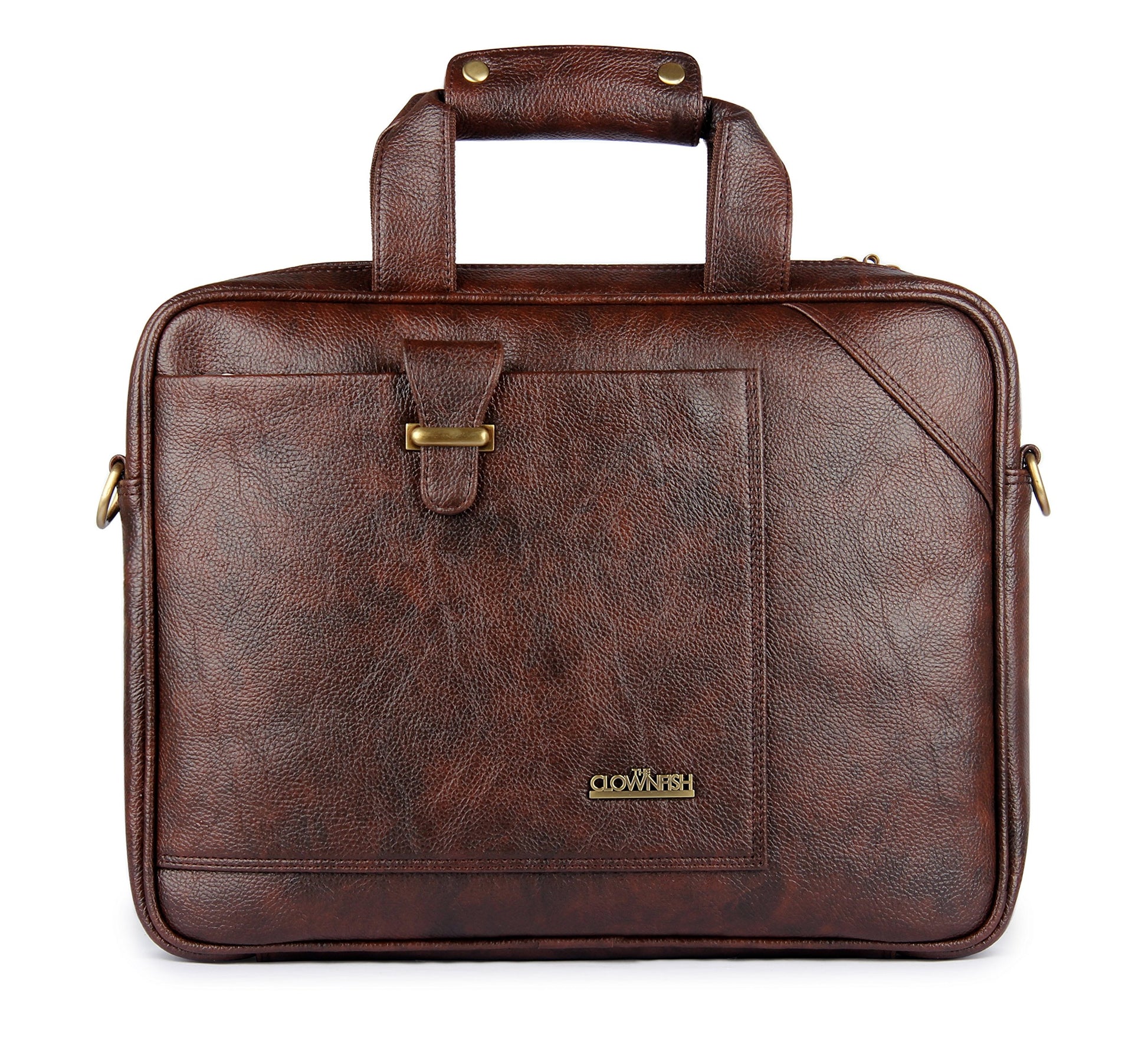 THE CLOWNFISH 15.6 inch Vegan Leather Brown Laptop and Tablet Bag