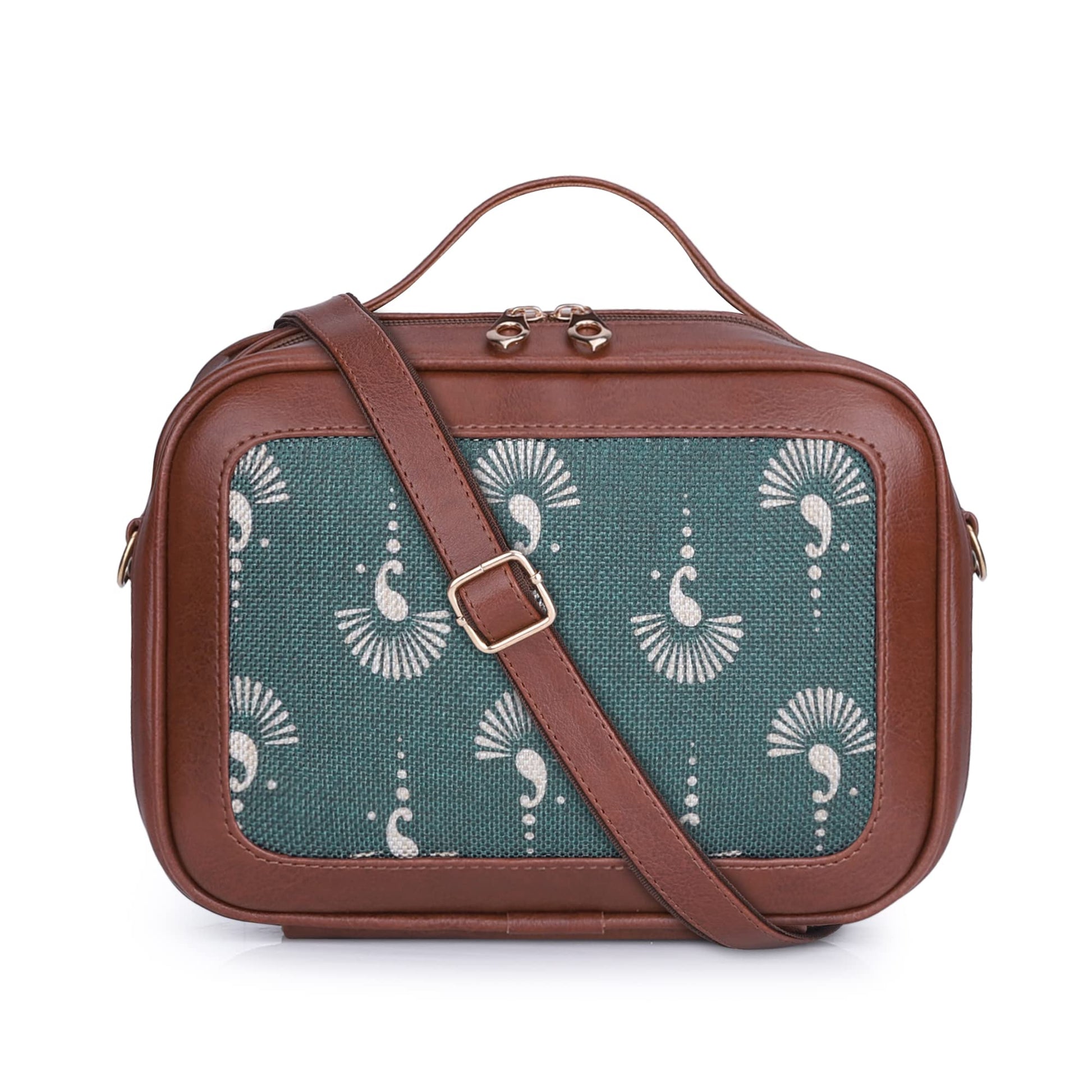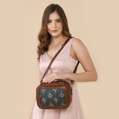 The Abana Polyester and Faux Leather Crossbody Sling Bag with Top Handle for Women Party Bag Purse with Adjustable Shoulder Strap and Printed Design for Ladies College Girls (Slate Grey)