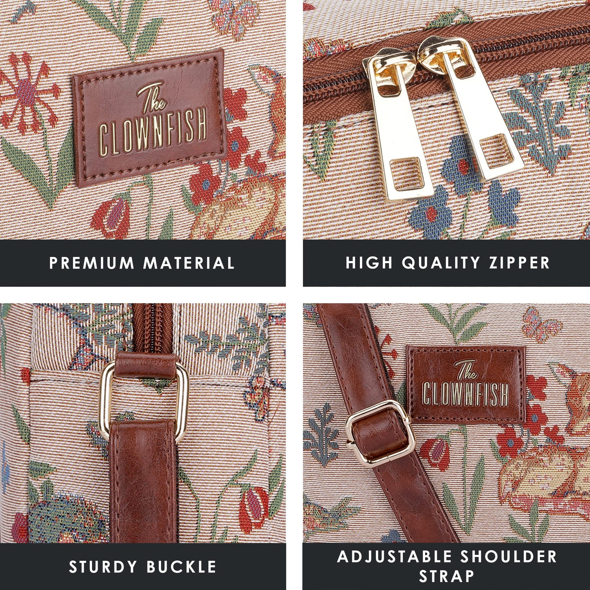 Introducing THE CLOWNFISH Adelina Series Sling Bag, a perfect blend of fashion and functionality designed for the modern woman. This versatile bag is crafted from premium faux leather and tapestry materials, ensuring durability and elegance.