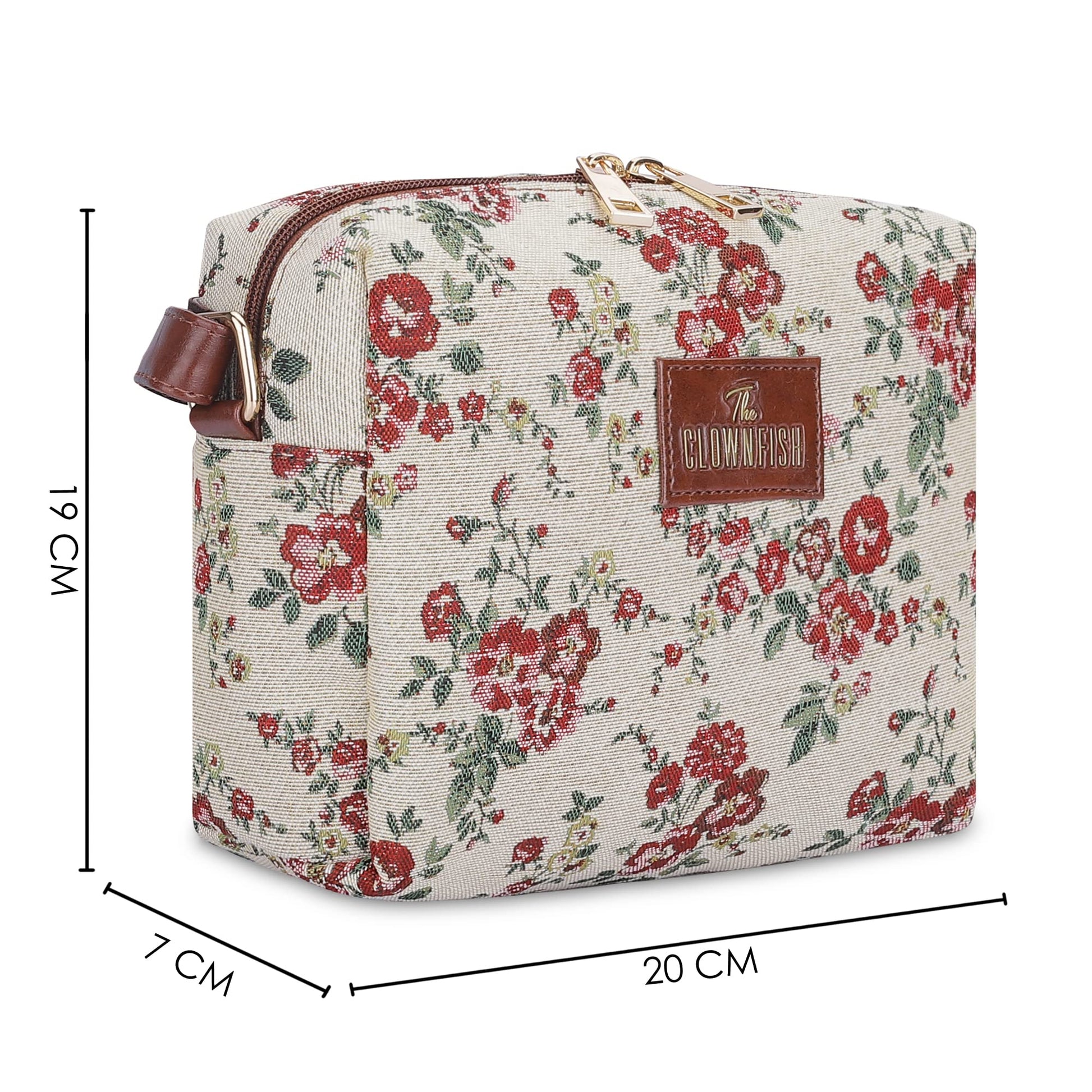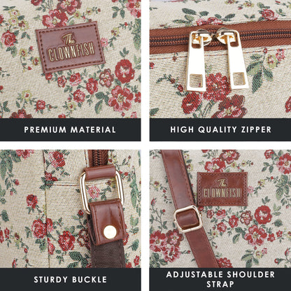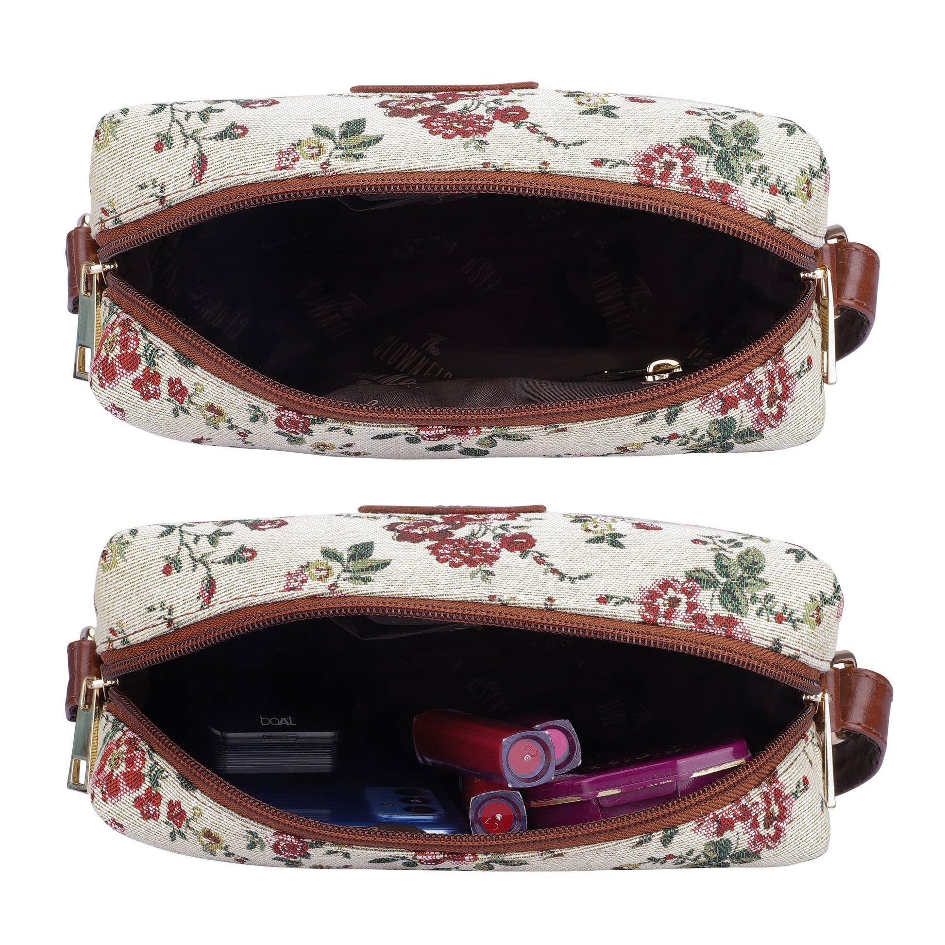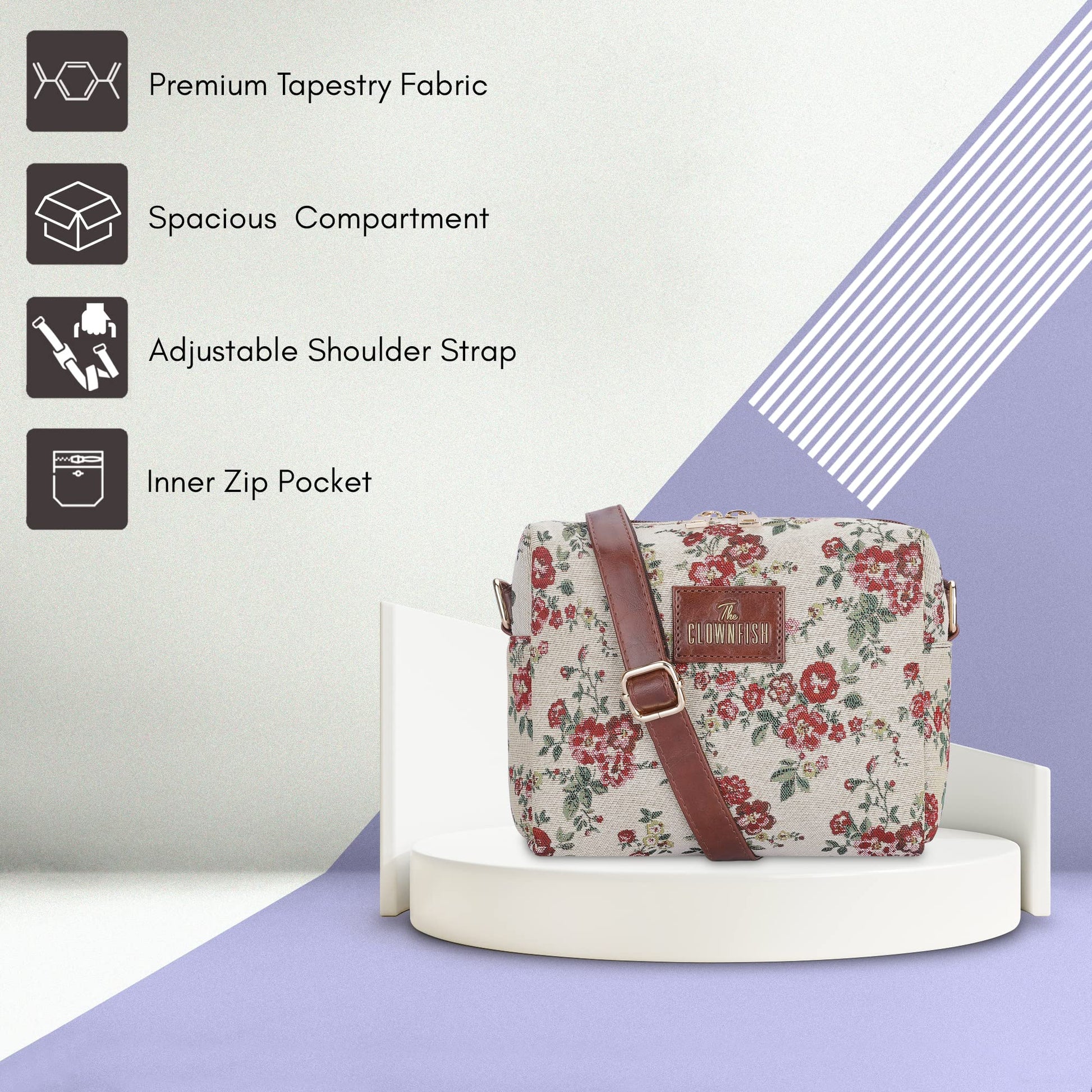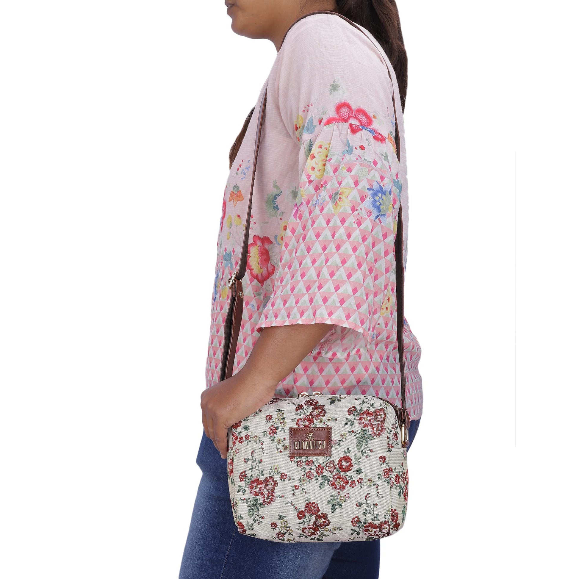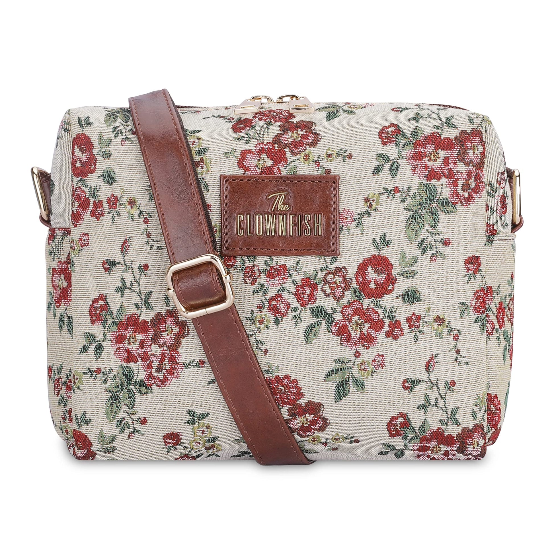 THE CLOWNFISH Adelina Series Sling for Women Faux Leather Casual Ladies Single Shoulder Bag For Women Crossbody Bag for College Girls (White-Floral)