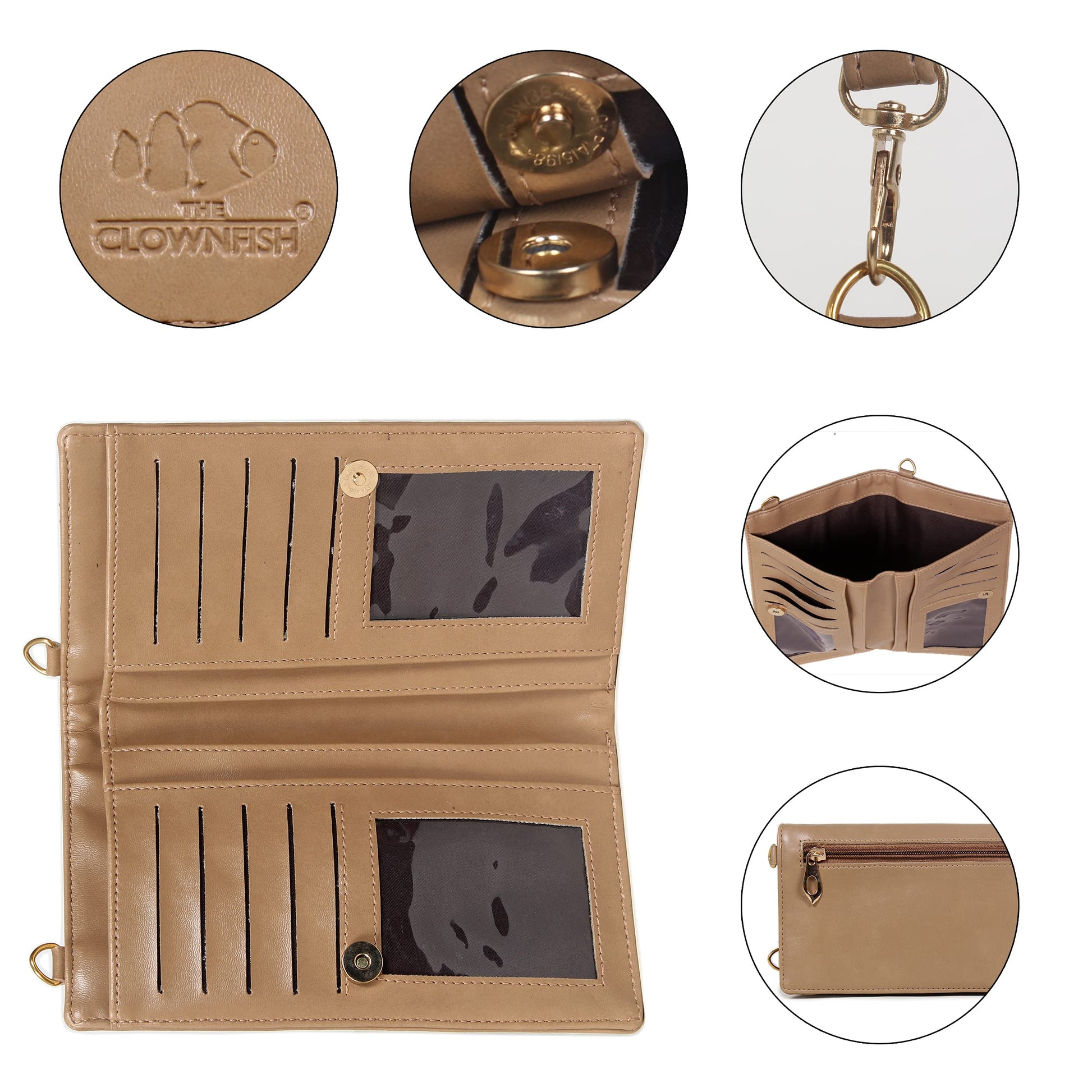 Introducing the THE CLOWNFISH Adora Ladies Wallet/Sling Bag by Clownfish, crafted from luxurious, richly grained premium vegan leather, offering both style and functionality. This well-designed wallet not only stands out with its alluring Saddle Brown color but is also versatile enough to be used as a sling bag. It features an array of compartments aimed at organizing your daily essentials conveniently.