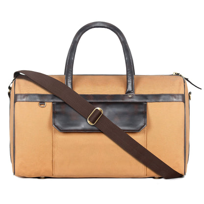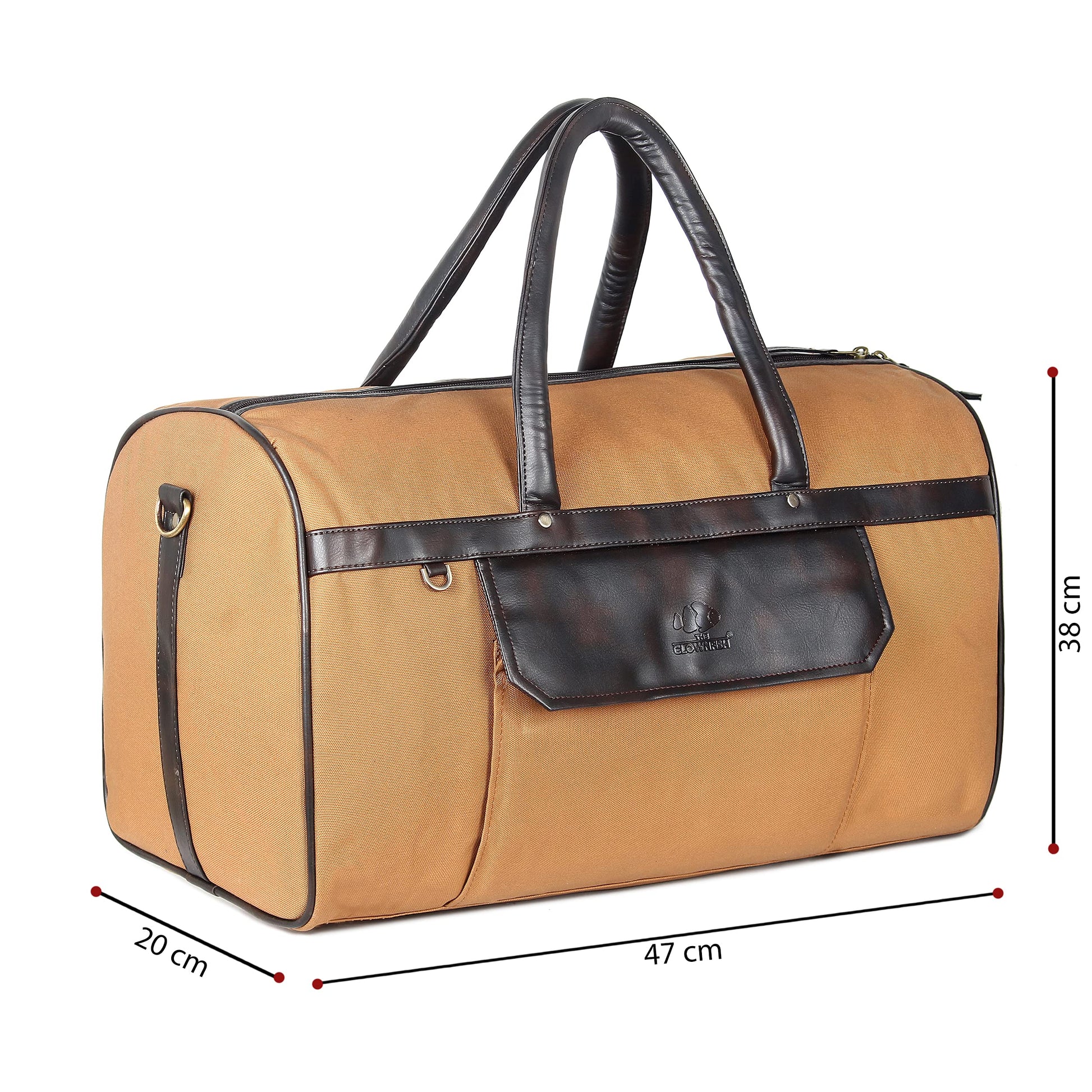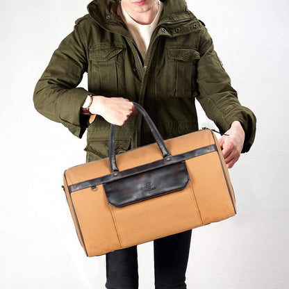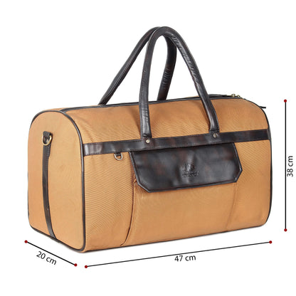 The Alwyn 35 litres Canvas with Faux Leather Unisex Travel Duffle Bag Weekender Bag (Yellow Ochre)