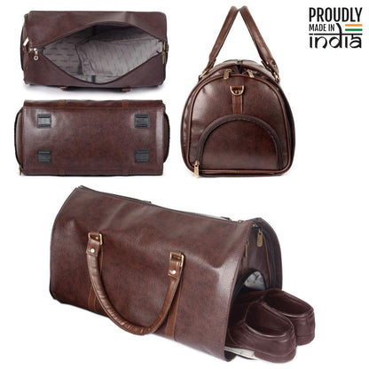 The Amaze Faux Leather Blazer Suit Coat Foldable Bag Garment Cover Travel Convertible Duffle Bag (Dark Brown)