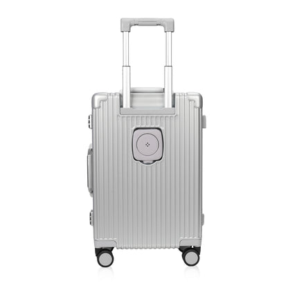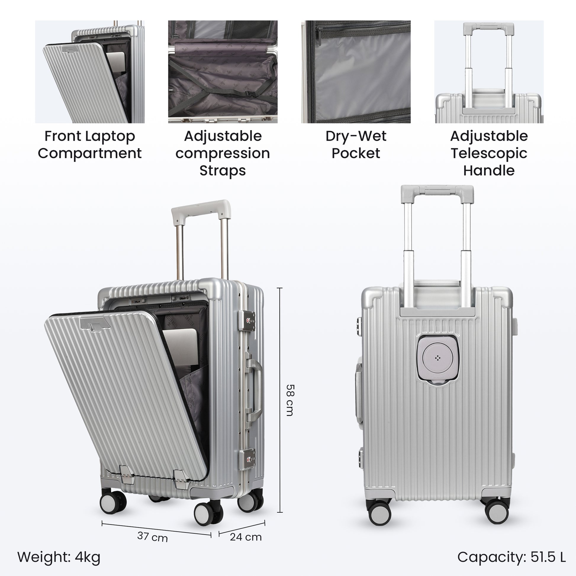 THE CLOWNFISH Ambassador Series Carry-On Luggage Polycarbonate Hard Case Suitcase Eight Spinner Wheel Trolley Bag with TSA Lock, USB, Mobile Holder, Cup Holder- Aluminium Silver (56 cm-22 inch)