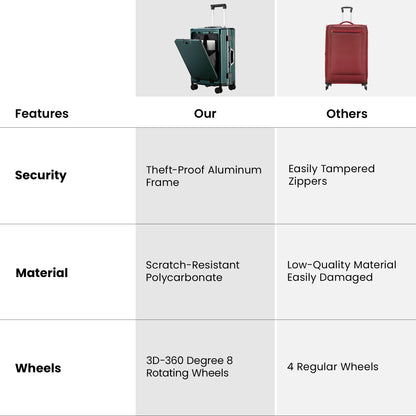 • Silent Multi-Directional Spinner Wheels: Effortlessly glide through crowded airports and rough pavements.