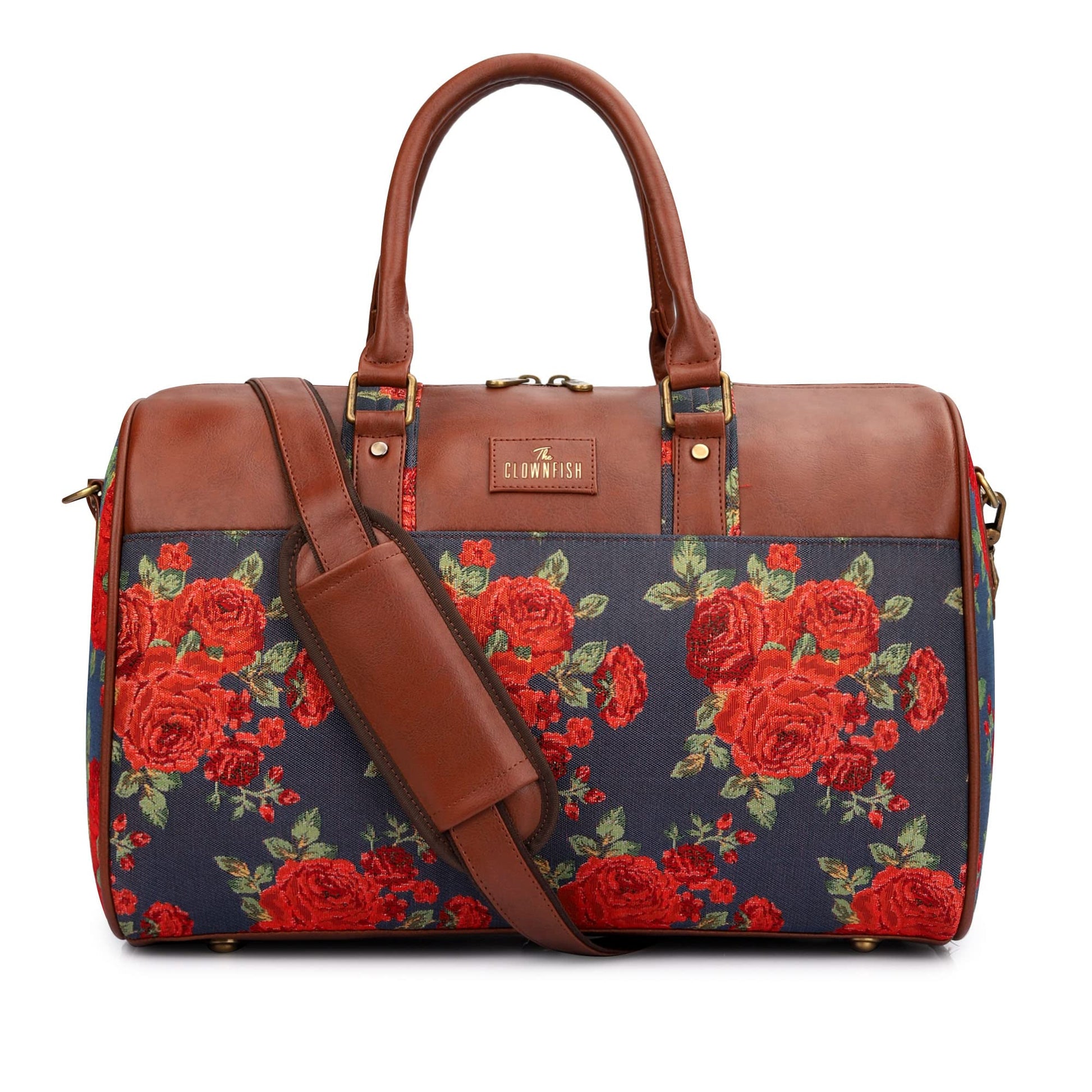 The Clownfish Ambretta Series 21 litres Tapestry Travel Duffle Bag Weekender Bag (Navy Blue)